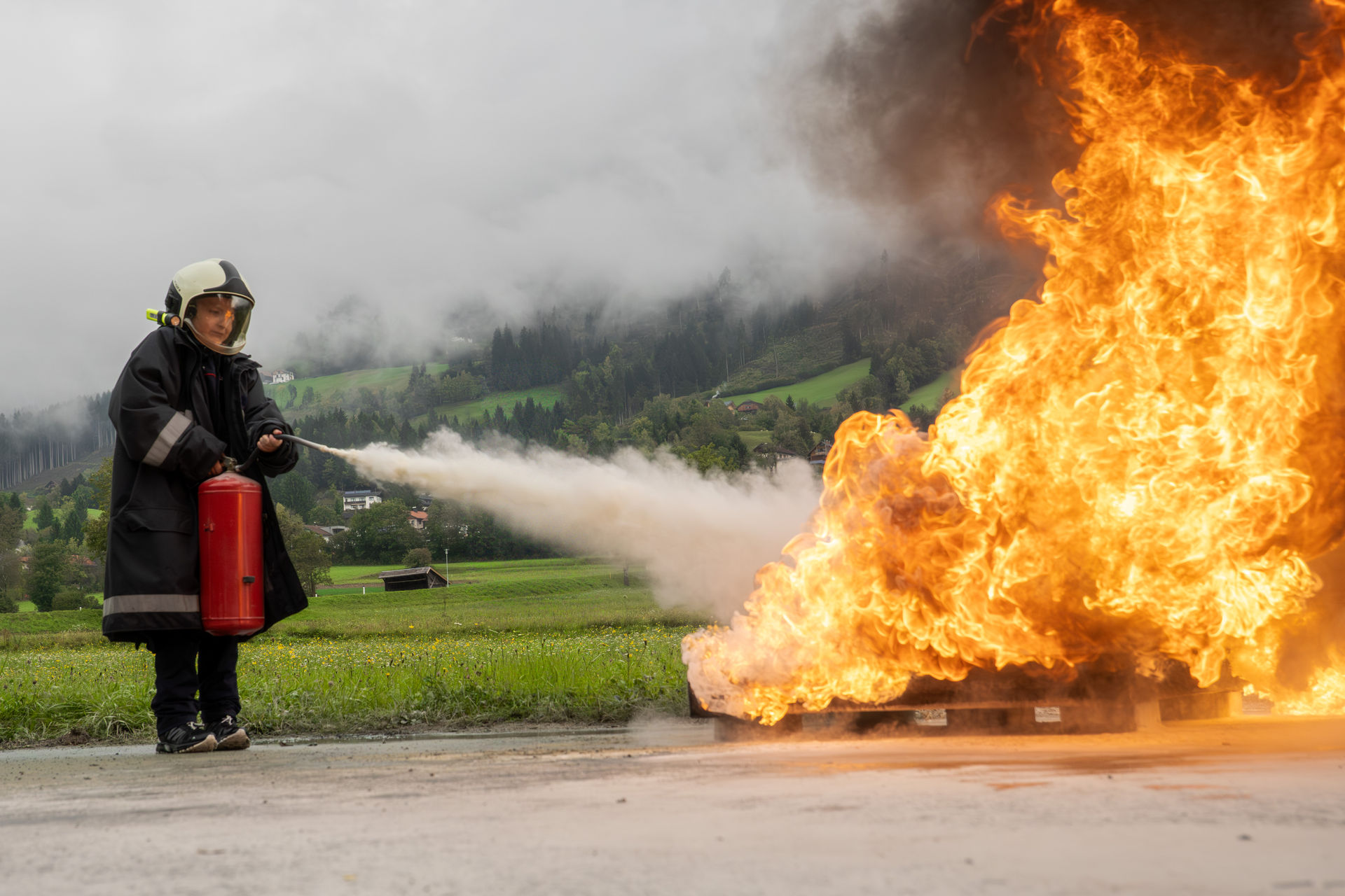 4. Feuerlöscher & Hebekissen – Erklärung unterschiedlicher Handfeuerlöscher mit Live-Vorführung sowie Geschicklichkeitsübungen mit Hebekissen.