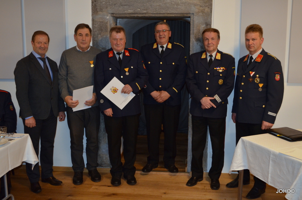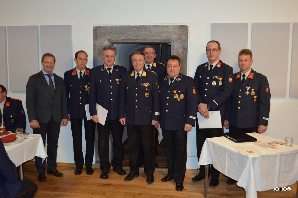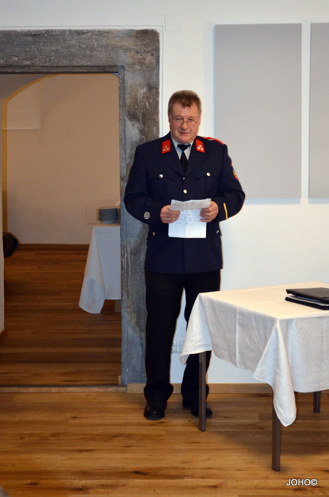 Nach dem Empfang in der Eingangshalle mit einem kleinen Umtrunk ging es in den Festsaal im 1. Stock des Schlosses.Kommandant HBi Rupert Moritzer konnte folgende Ehrengäste begrüßen: LFKu Mag. Harald Truskaller, BFK Stv. BR Peter Podesser, AFK Armin Ivants, AFK Stv. und Sicherheitsbeauftragter der Gemeinde Greifenburg HBi Norbert Kolbitsch, BGM Josef Brandner, sowie den Vertreter der Feuerwehr Greifenburg Kdt HBi Alexander Hasslacher und Bm Hermann Ebenberger Vertreter der Feuerwehr Bruggen, Altmitglieder und die aktiven Mitglieder der Feuerwehr Hauzendorf mit Frauen oder Freundinnen aber auch die Mitglieder der Jugendfeuerwehr.