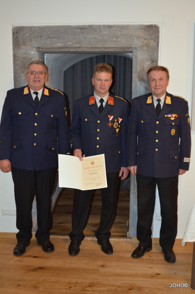 Es folgten die Berichte der Ehrengäste, an deren Anschluß dem Kommandanten eine besondere Ehrung zuteilwurde: ihm wurde das Ehrenzeichen am Band in Silber verliehen.