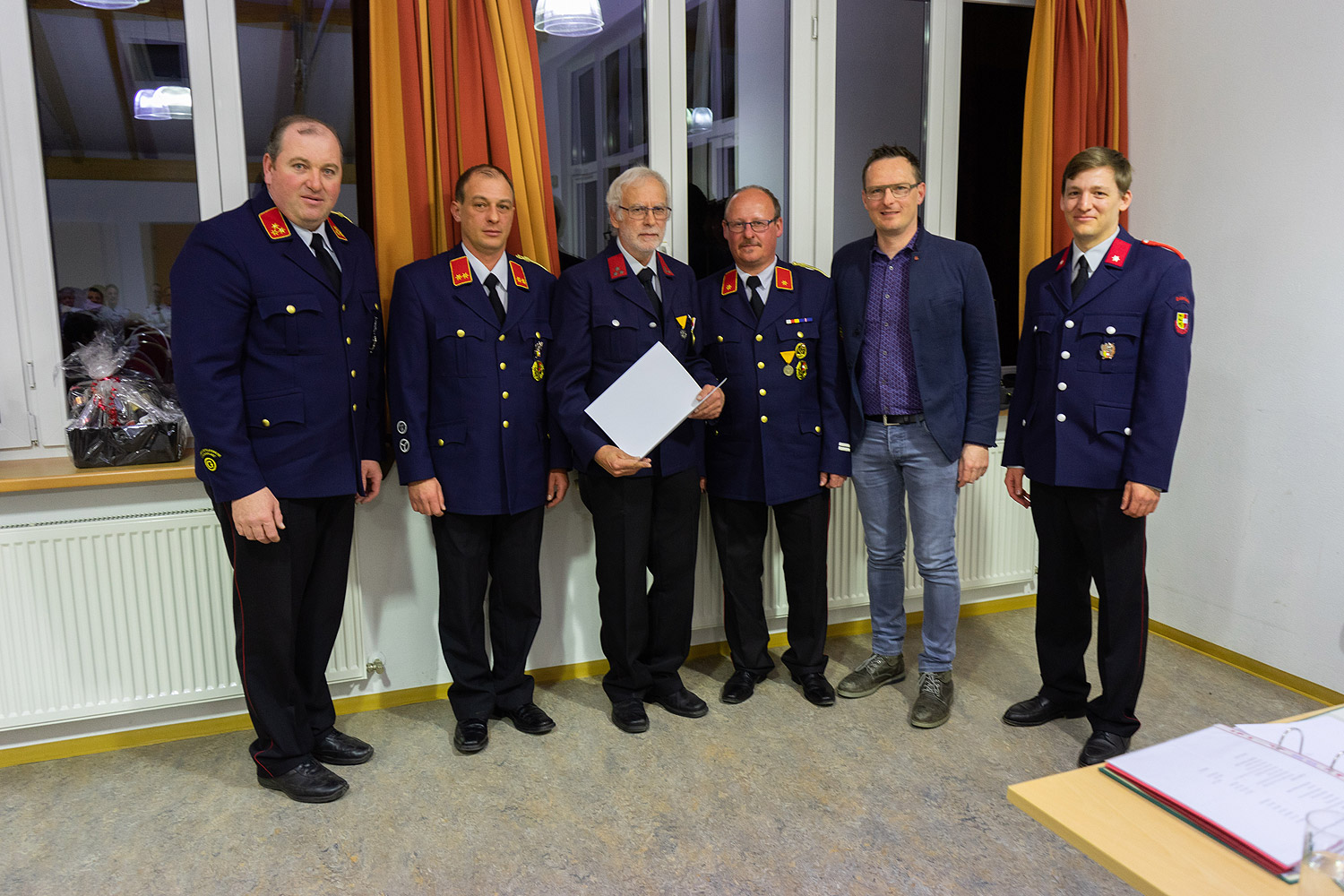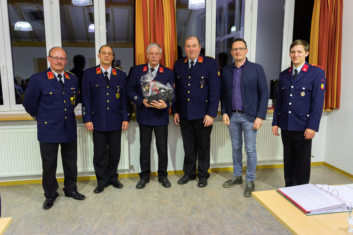 Besonders geehrt wurde Werner Penker für seine 50-jährige Tätigkeit im Dienste der Feuerwehr. Eine kleine Aufmerksamkeit erhielt HFM Benedikt Wilpernig, er wechselt in den Reservestand, ist aber der erste Kamerad, der die neue Regelung in Anspruch nimmt und uns weiterhin bis zum 70. Lebensjahr aktiv unterstützen wird.
