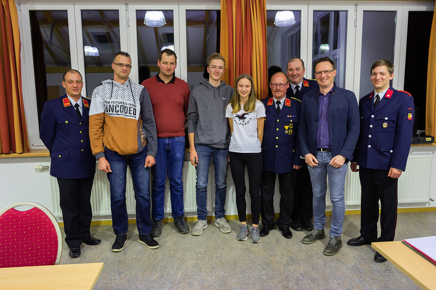 Erfreulicherweise wurden mit Walter Rauter, Markus Hinteregger und Alexander Bacher drei neue Kameraden und erstmals in der Geschichte der Feuerwehr Kaning mit Julia Pontasch und Melissa Wilpernig auch zwei Kameradinnen in unserer Wehr aufgenommen.