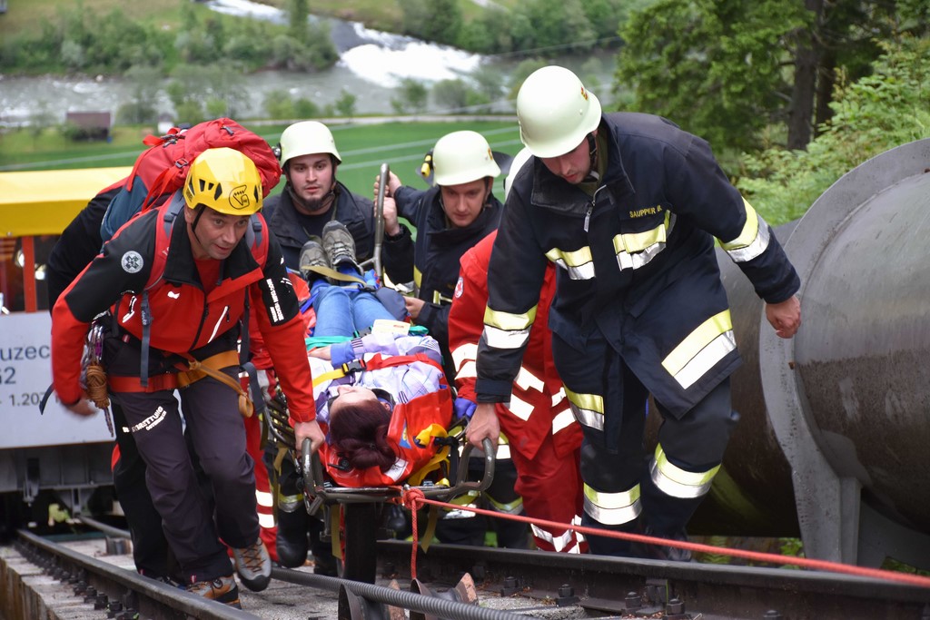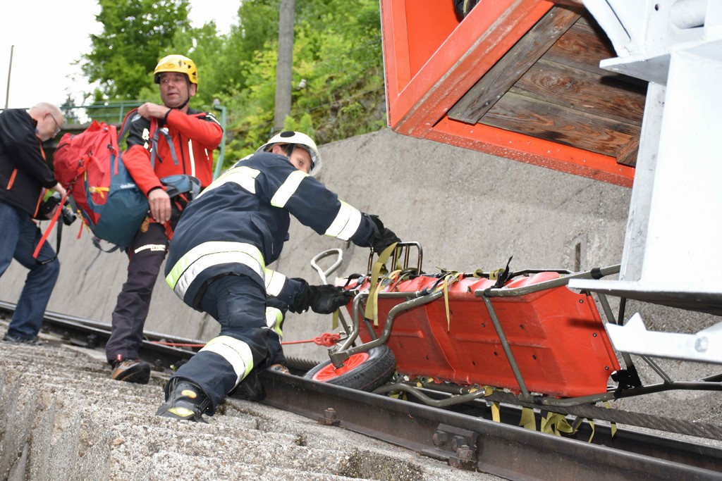 Eine ganze Schulklasse war auf der Freistrecke in den beiden Wägen eingeschlossen und musste befreit und über steiles Gelände geborgen werden. Zuvor war es erforderlich die Wagen der Bahn gegen einen Absturz zu sichern.