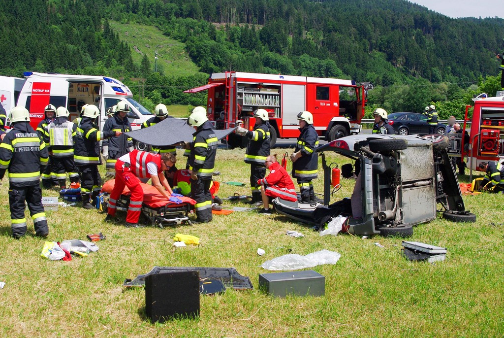 Noch auf der Zufahrt zum Unfallort forderte der Einsatzleiter der FF St.Peter-Spittal, Kommandant Peter Gradnitzer, Verstärkung an.