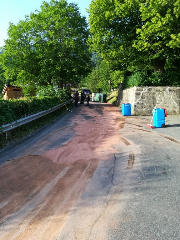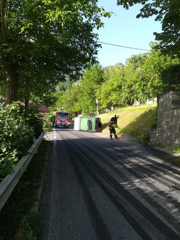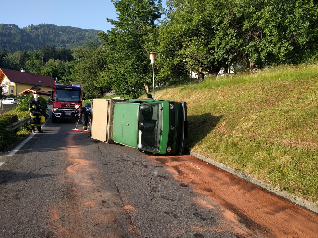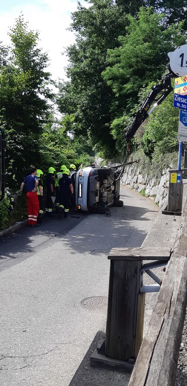 Diesmal touchierte ein Kleintransporter die bergseitige Straßenböschung und es kam wiederum zu einem seitlichen Überschlag des Fahrzeuges.