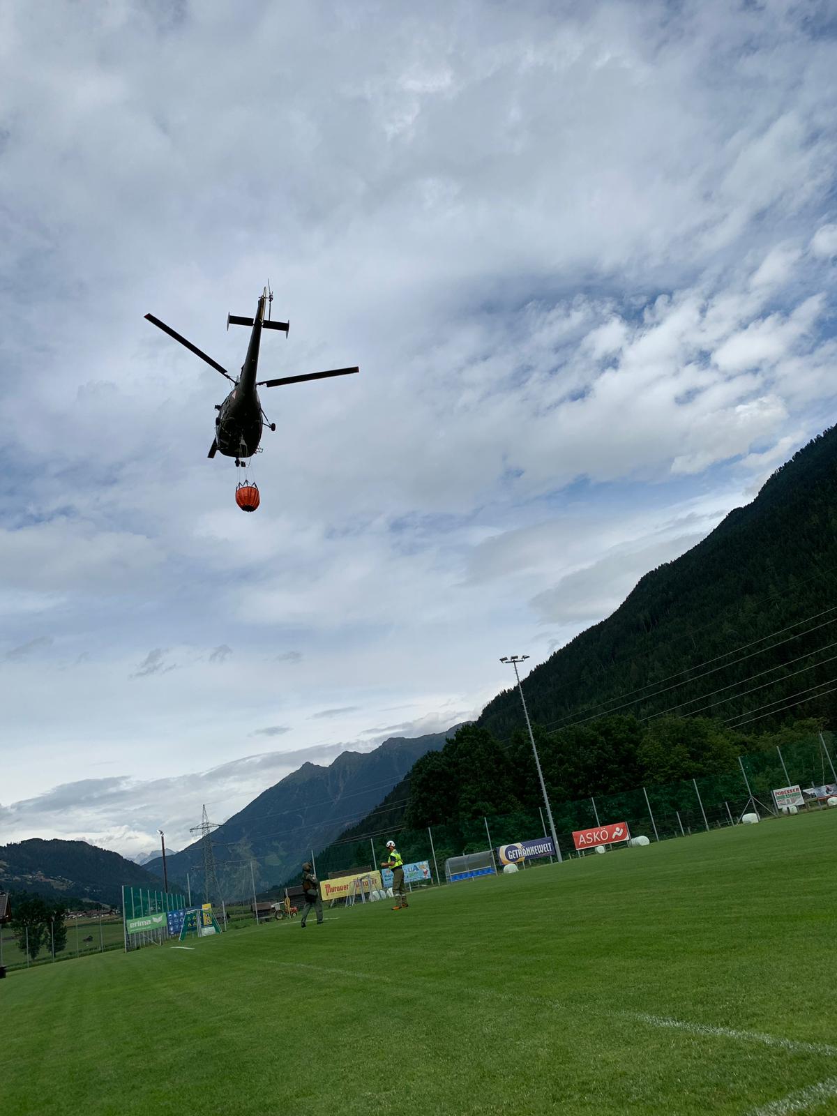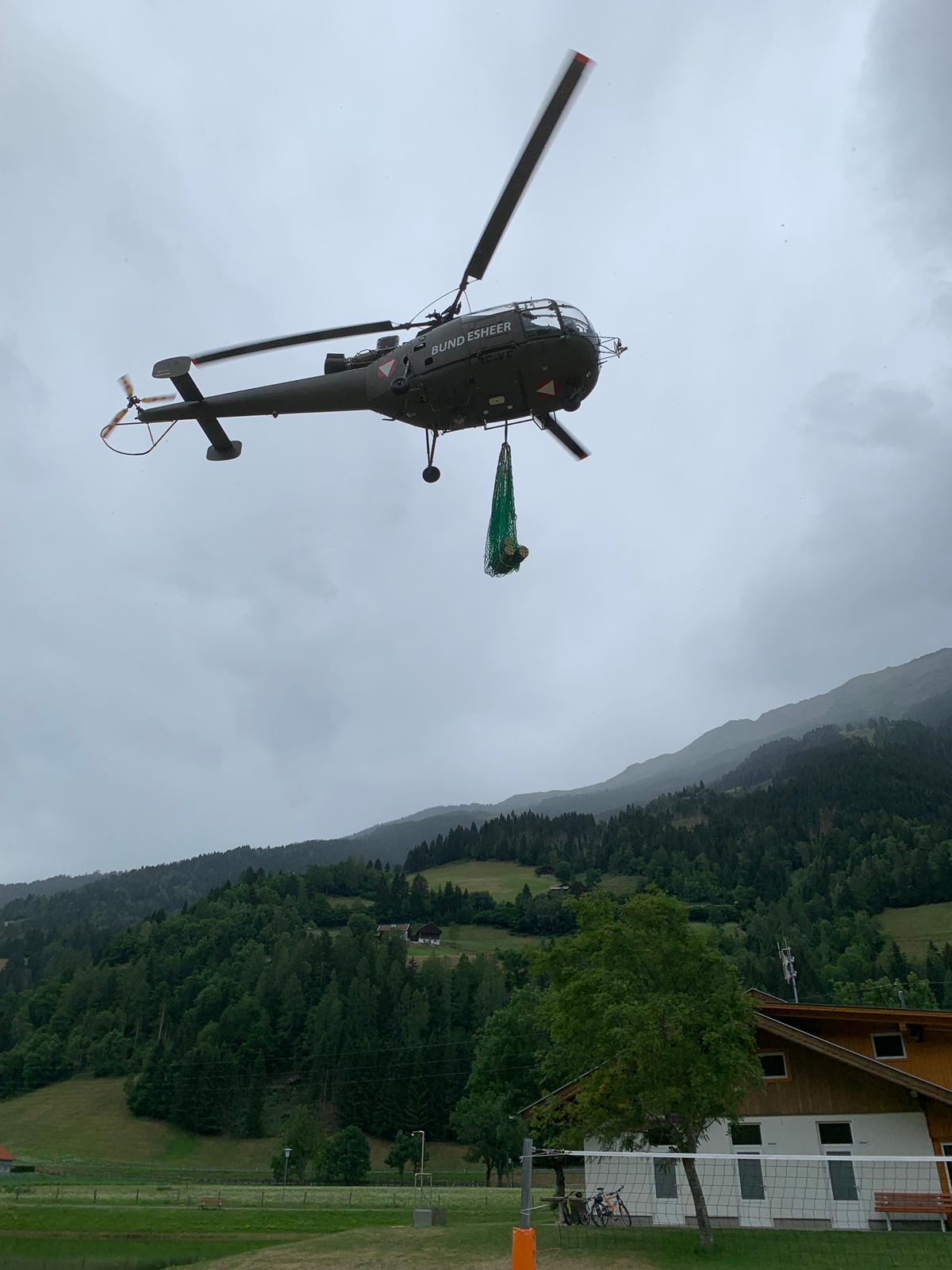 Eine Alouette III des Bundesheeres traf bereits um 16 Uhr ein und führte einen Erkundungsflug durch. Nur mit Hilfe des Hubschraubers konnte das Löschwasser und das Gerät für die Einsatzkräfte in diesen Bereich gebracht werden. Gegen 21 Uhr konnte Brand aus gegeben werden.