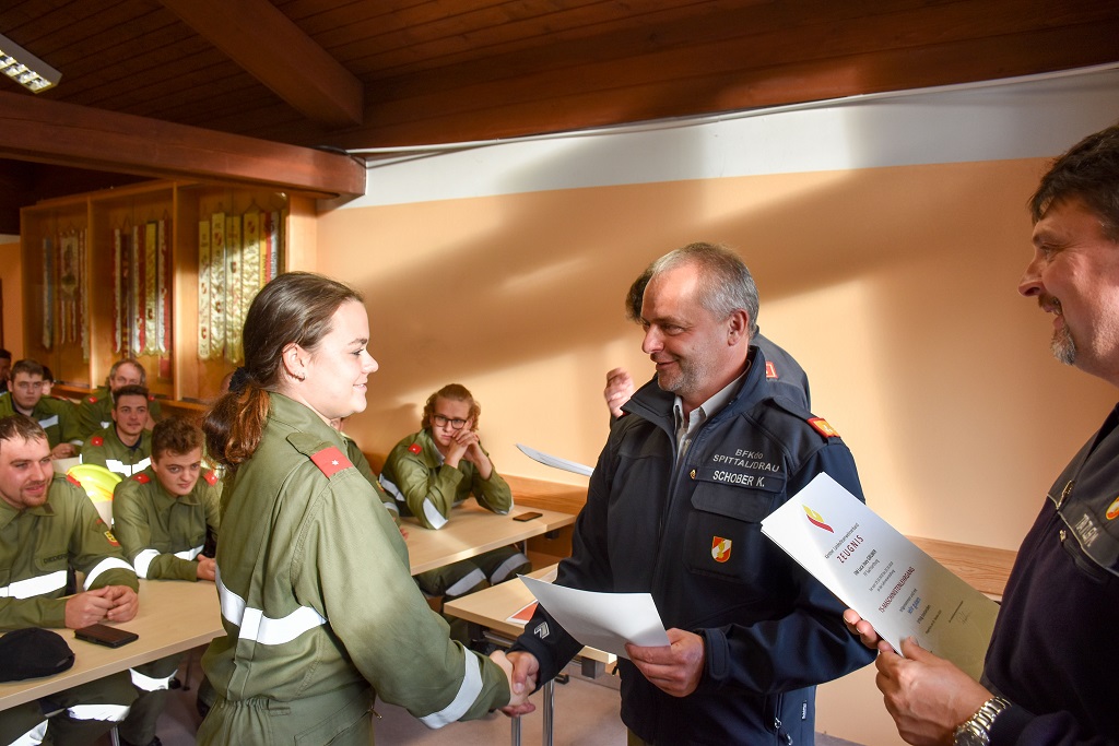 Auch Bezirksfeuerwehrkommandant Kurt Schober freute sich über den erfolgreichen Abschluss des Lehrganges und konnte zwanzig Kameraden zum ausgezeichneten Kurserfolg gratulieren. Er dankt auch dem Ausbilderteam und der FF Möllbrücke für die Unterstützung des Kurses.