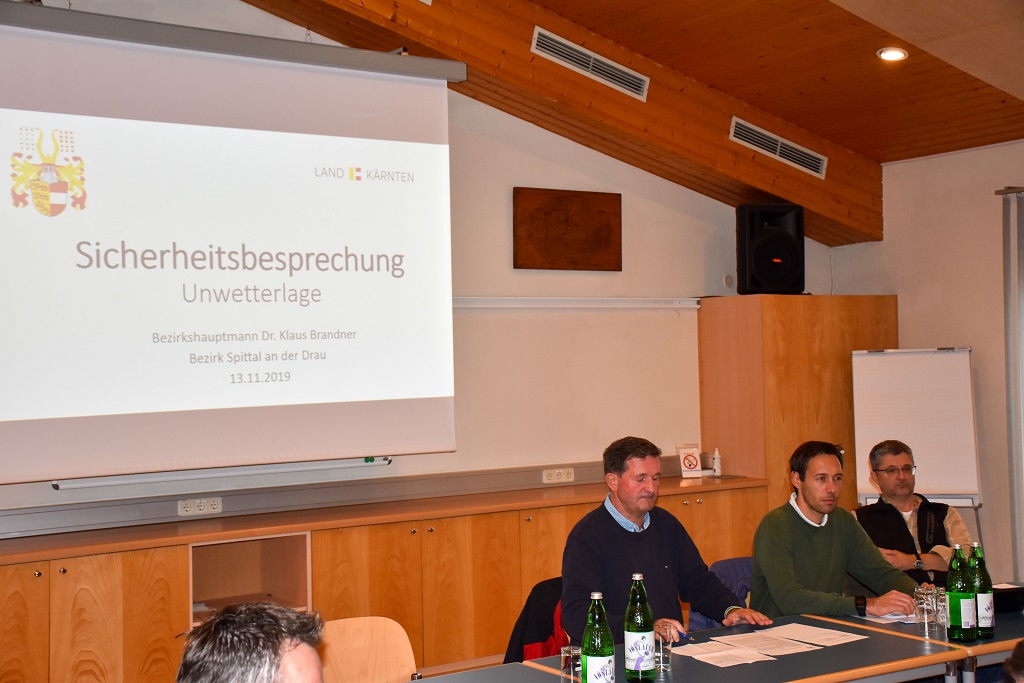 Am 13. November 2019 um 13 Uhr fand im Feuerwehrhaus Spittal auf Einladung des Bezirkshauptmannes Dr. Klaus Brandner eine Besprechung zur Entwicklung der extremen Wetterlage im Bezirk Spittal statt.