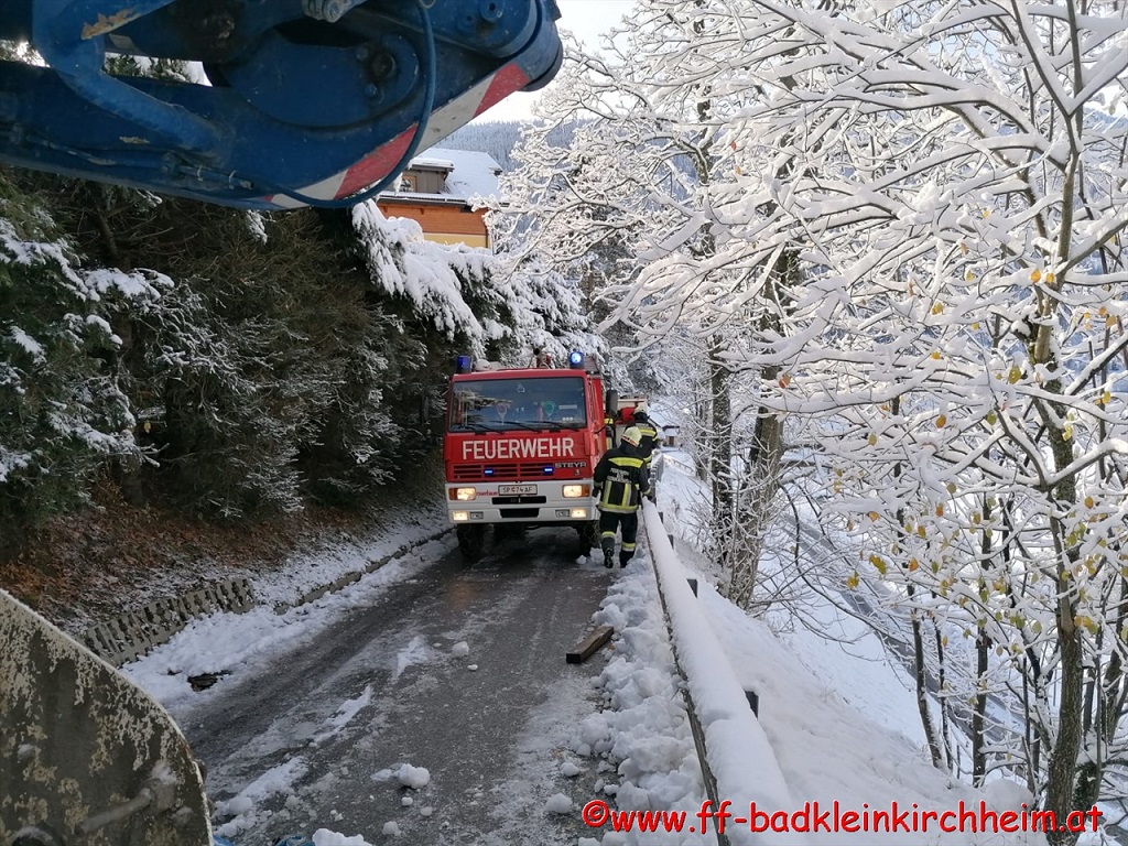 Am 14.11.2019 um 08:38 Uhr wurde die Feuerwehr Bad Kleinkirchheim per Sirenenalarm erneut zu einer LKW Bergung (T 2 – Fahrzeug sichern über 3,5 Tonnen) alarmiert. Aufgrund der Einsatzmeldung der LAWZ begaben wir uns mit RLFA 2000, TLFA 2000 und KLFA zum Einsatzort in den Bernsteinweg.