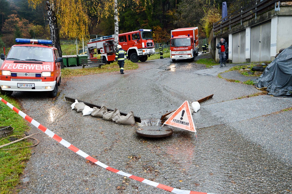 Auch der Stadtfriedhof von Spittal ist betroffen. Entlang der Wege fließt außergewöhnlich viel Wasser ab. „Sollte es weiterhin solche Niederschläge geben, werden die Oberflächenwasserkanäle im Friedhofsbereich diese Wassermengen nicht aufnehmen können und es kann zu kleinflächigen Überschwemmungen in und um den Friedhof kommen,“ sagt der Kommandantstellvertreter der FF Spittal, Volker Hering.