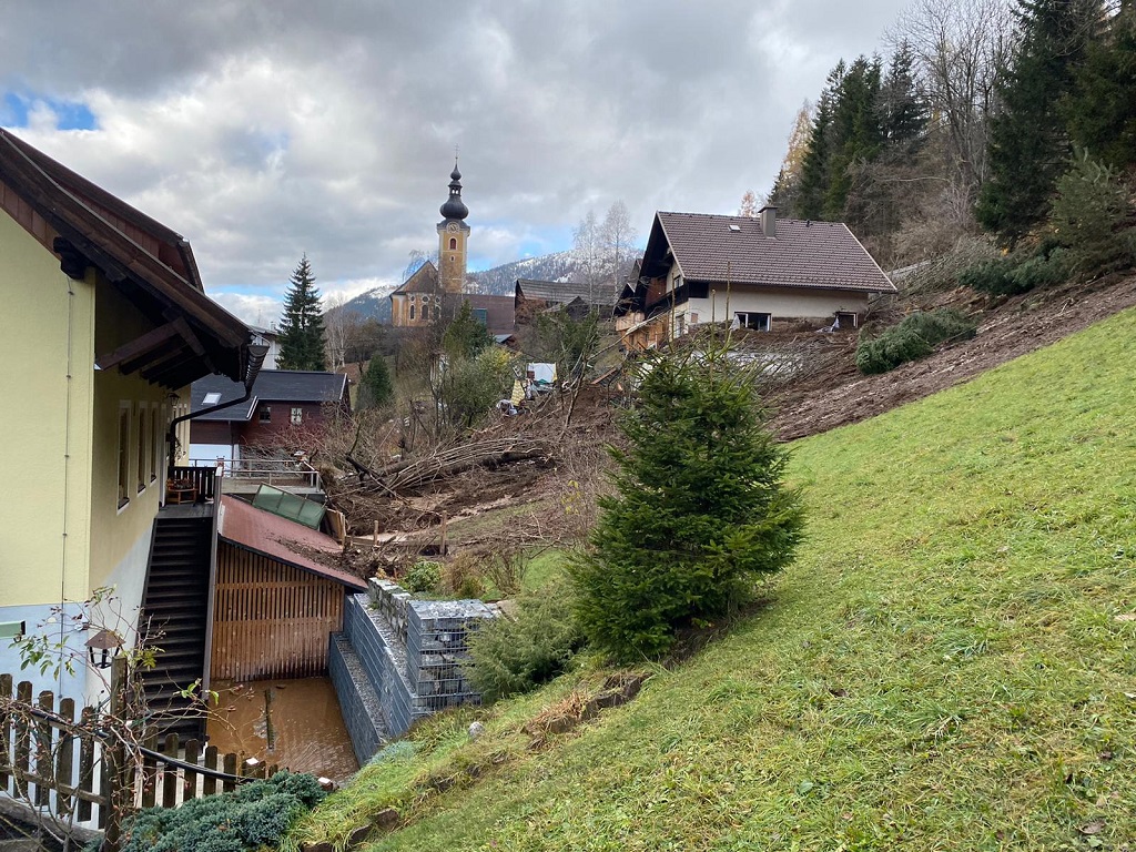 Am Montag, dem 18. November 2019, hat eine Hangrutschung im Ort Bad Kleinkirchheim gegen 11 Uhr mehrere Häuser beschädigt. Eines davon so sehr, dass Teile davon eingestürzt sind.
