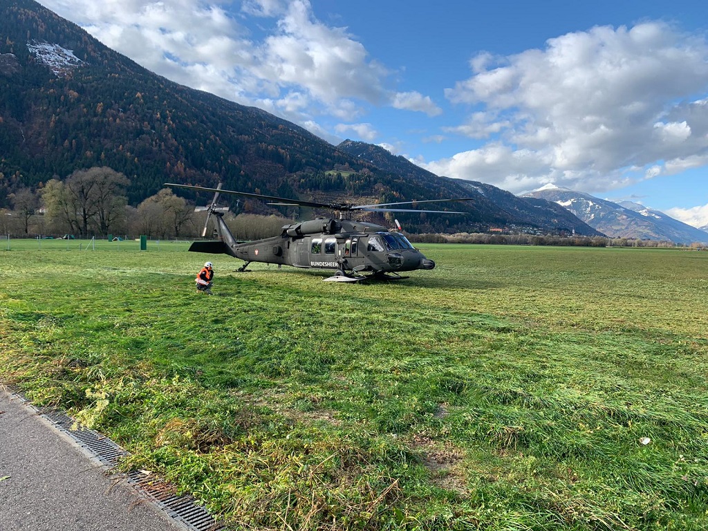Am Montag, dem 18.11. haben insgesamt zwei Hubschrauber des BMI und zwei des österreichischen Bundesheeres den ganzen Tag über im Bezirk Spittal Erkundungs- und Versorgungsflüge sowie medizinische Transportflüge absolviert. Die Erkundungsflüge waren in dieser Witterungspause unerlässlich für die Beurteilungslage des Einsatzstabes der Feuerwehr.