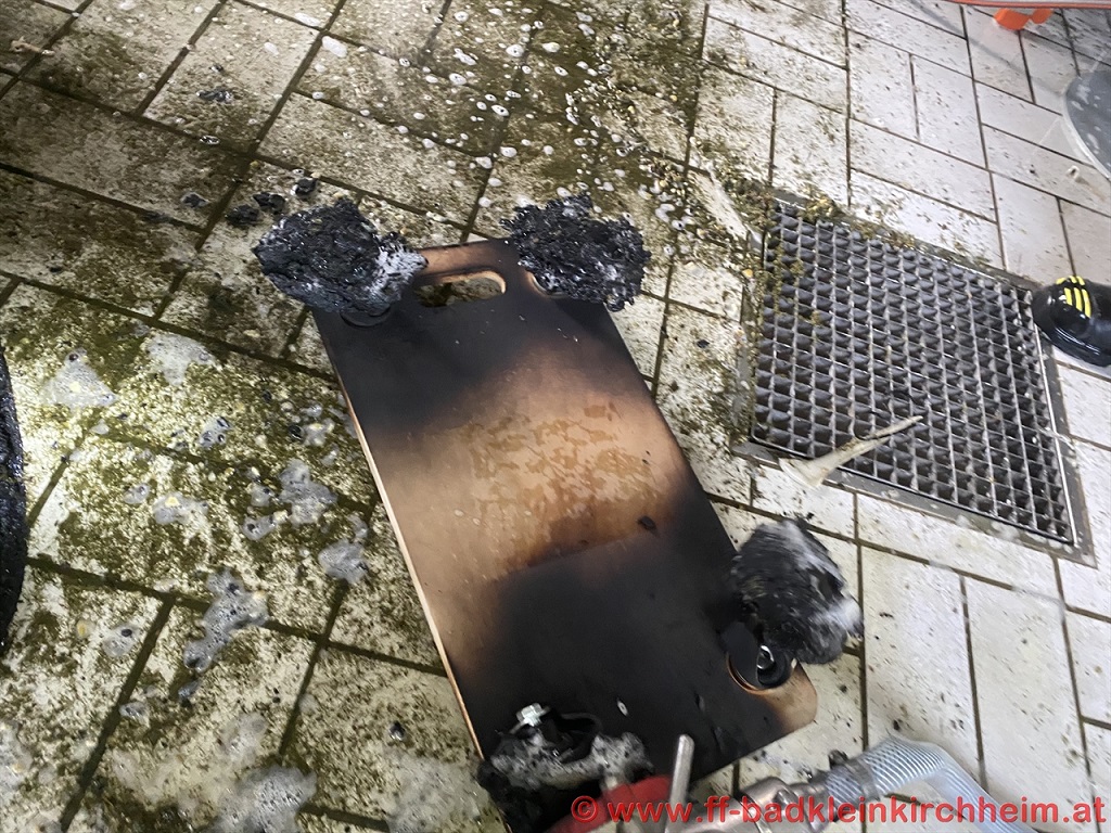Während eines Befüllvorganges eines Brennkessels kam es aufgrund Temperaturerhöhung im Brennkessel zu einem Überlaufen des Füllgutes. Das übergelaufene Füllgut entzündete sich in der Folge an heißen Teilen des Brennkessels, wodurch es zu einer Verpuffung und zu einem Brand im Brennraum kam.