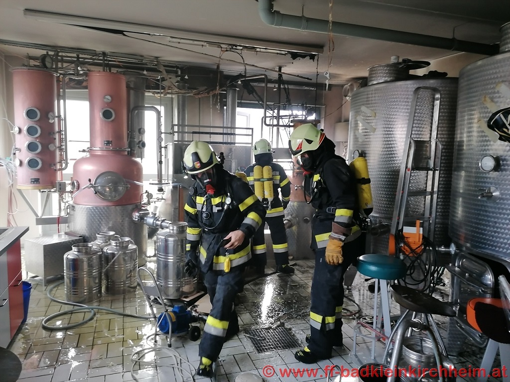 Am 25.11.2019 um 12:22 Uhr wurden die Feuerwehren Bad Kleinkirchheim, St. Peter ob Radenthein und Patergassen mit dem Einsatzstichwort „B 4 – Brand mit/nach Explosion“ in eine Destillerie im Ortsteil Untertschern alarmiert.