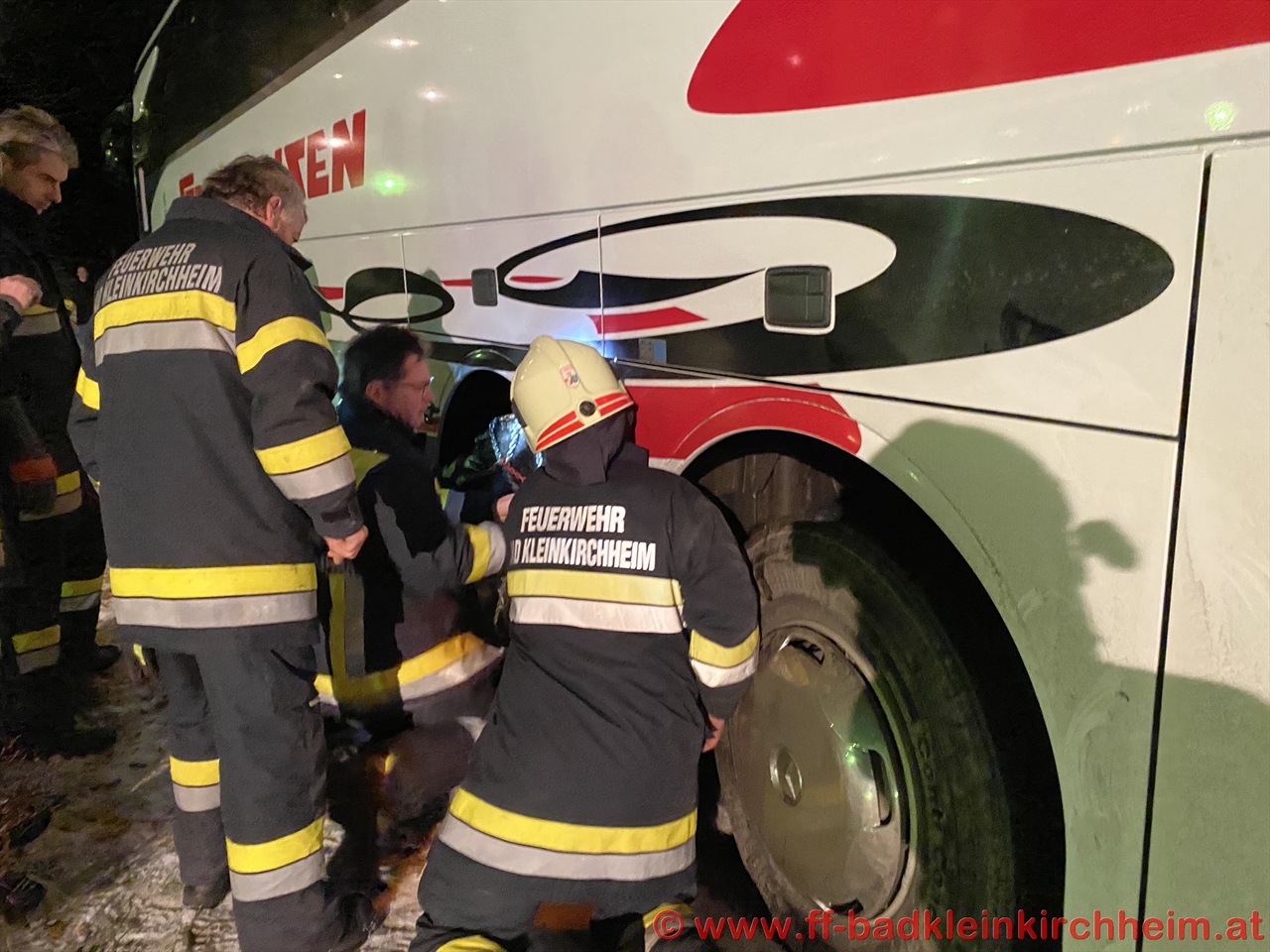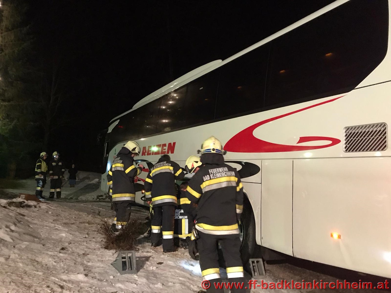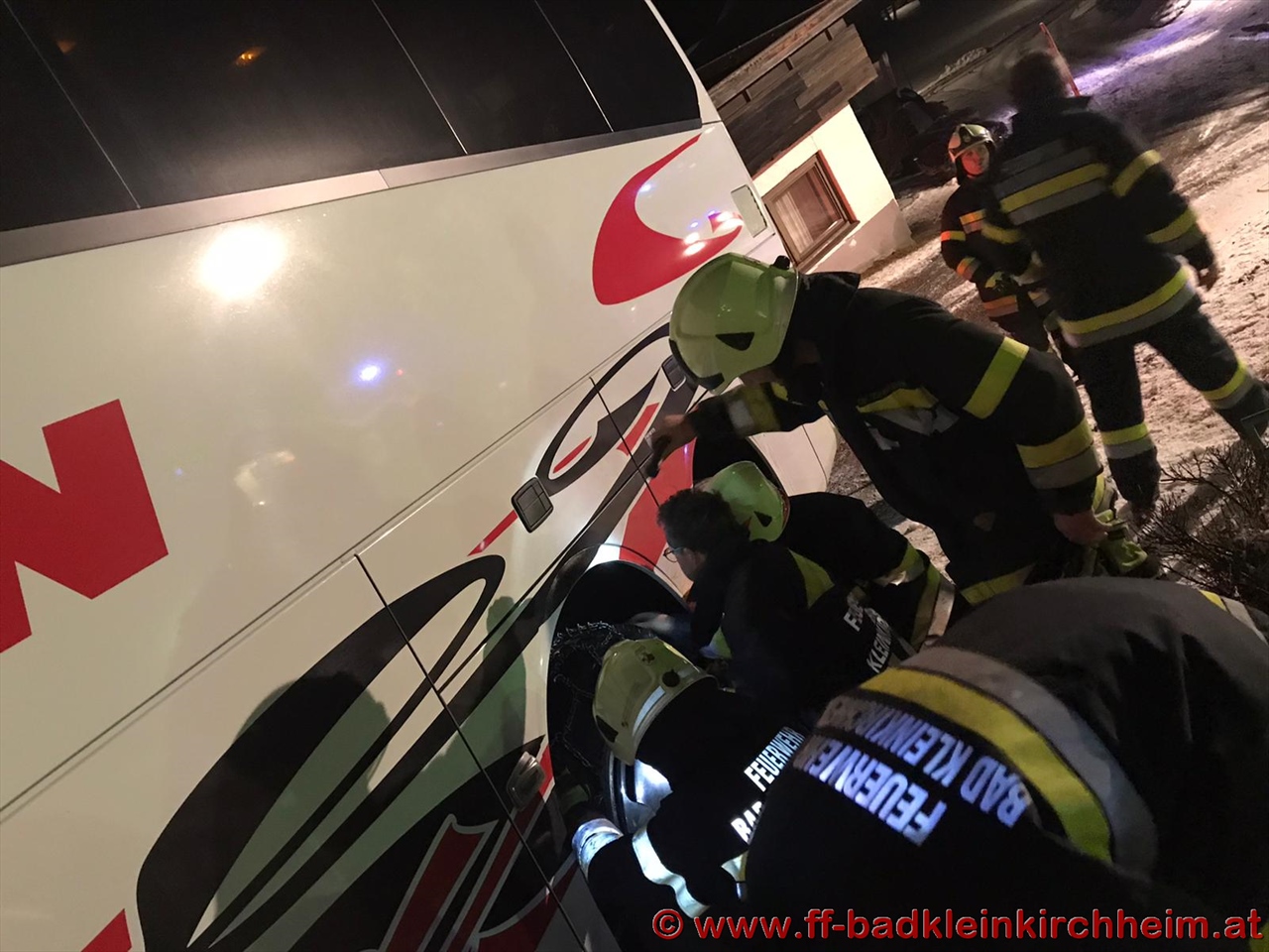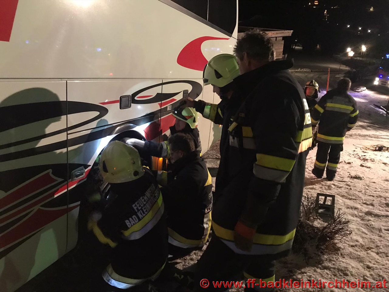 Der Bus wurde durch die FF Bad Kleinkirchheim gesichert. Die Kameraden montierten Schneeketten und konnten den Bus so aus eigener Kraft aus der Notsituation befreien. Weiters wurde der Gepäckstransport durch die FF zum Hotel bewerkstelligt.