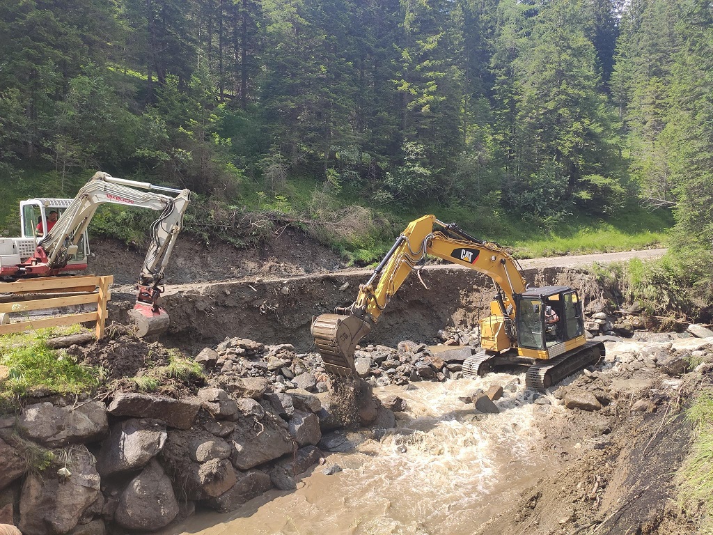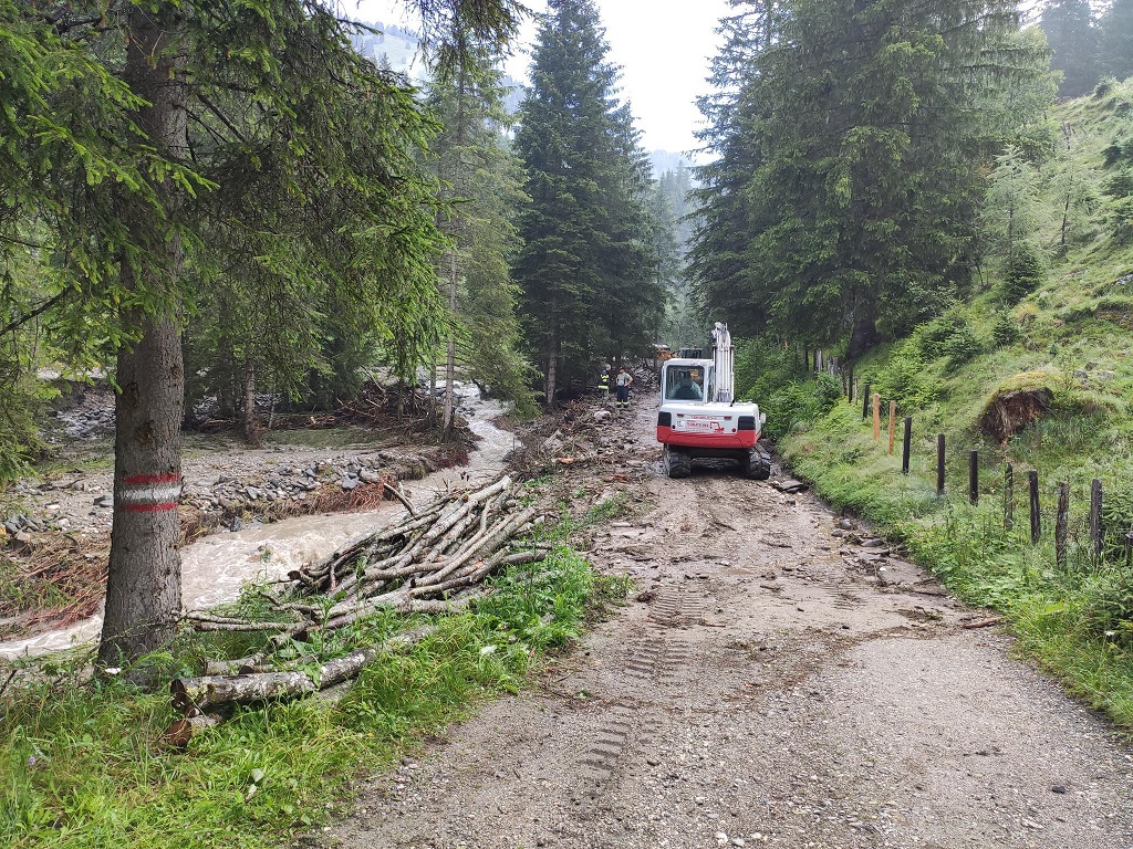 Mit schwerem Gerät wird die Straße repariert, um die Hütten wieder erreichbar zu machen. Weiters wurden mittels Motorsägen Wege von Bäumen befreit und mehrere Urlauber zu Fuß aus dem Langalmtal begleitet. Im Bereich Kaning-Bach wurde außerdem noch Frischwasser in die am Bach angrenzenden Teiche gepumpt, um ein Fischsterben zu verhindern.