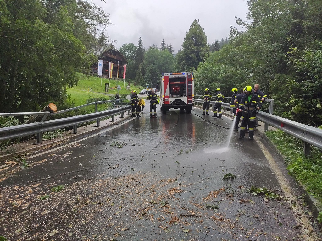 Nach den massiven Unwetterschäden am Vortag rückten am 30.07.2020 früh morgens wieder Kameraden aus, um bei den Aufräumarbeiten zu helfen. Gemeinsam mit dem Bürgermeister der Stadtgemeinde Radenthein Michael Maier und dem Bauhof wurde das Langalmtal über Mitterberg angefahren, um die Schäden zu begutachten und eine provisorische Verbindung für Fahrzeuge in das Tal herzustellen.