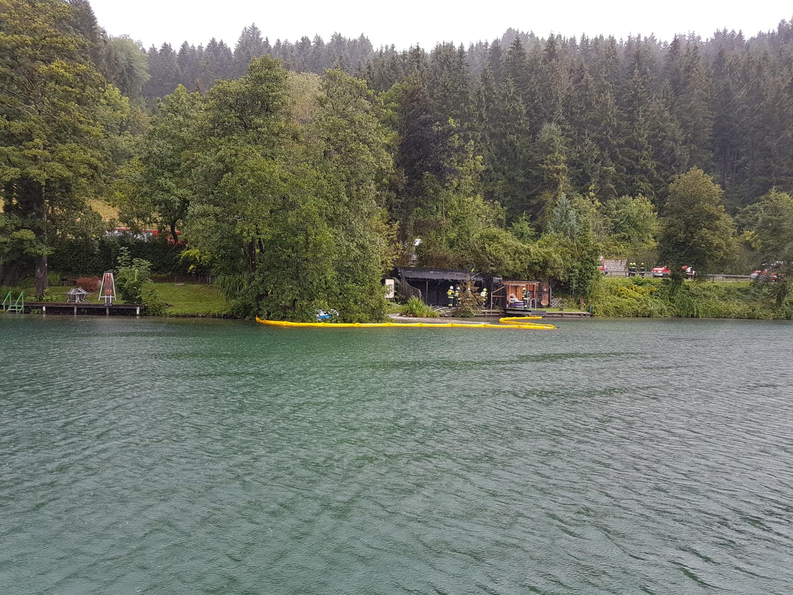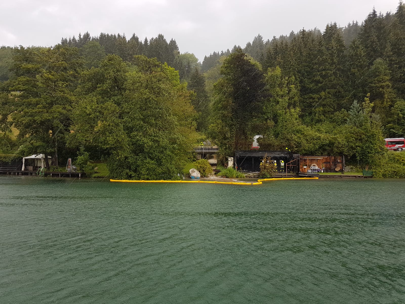 Um auf eine eventuelle Gewässerverunreinigung am Millstättersee schnell reagieren zu können, rückte das Boot Seeboden mit einer Ölsperre zur Einsatzstelle aus. Die Ölsperre wurde für die Dauer der Löscharbeiten im Bereich der Einsatzstelle eingebracht und konnte nach den Nachlöscharbeiten wieder entfernt werden.