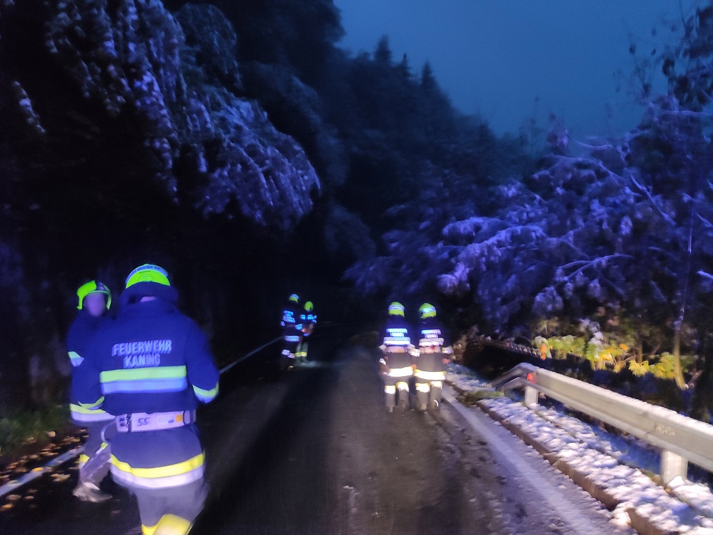 Unwettereinsatz – Bäume durch schweren Schnee auf Fahrbahn
