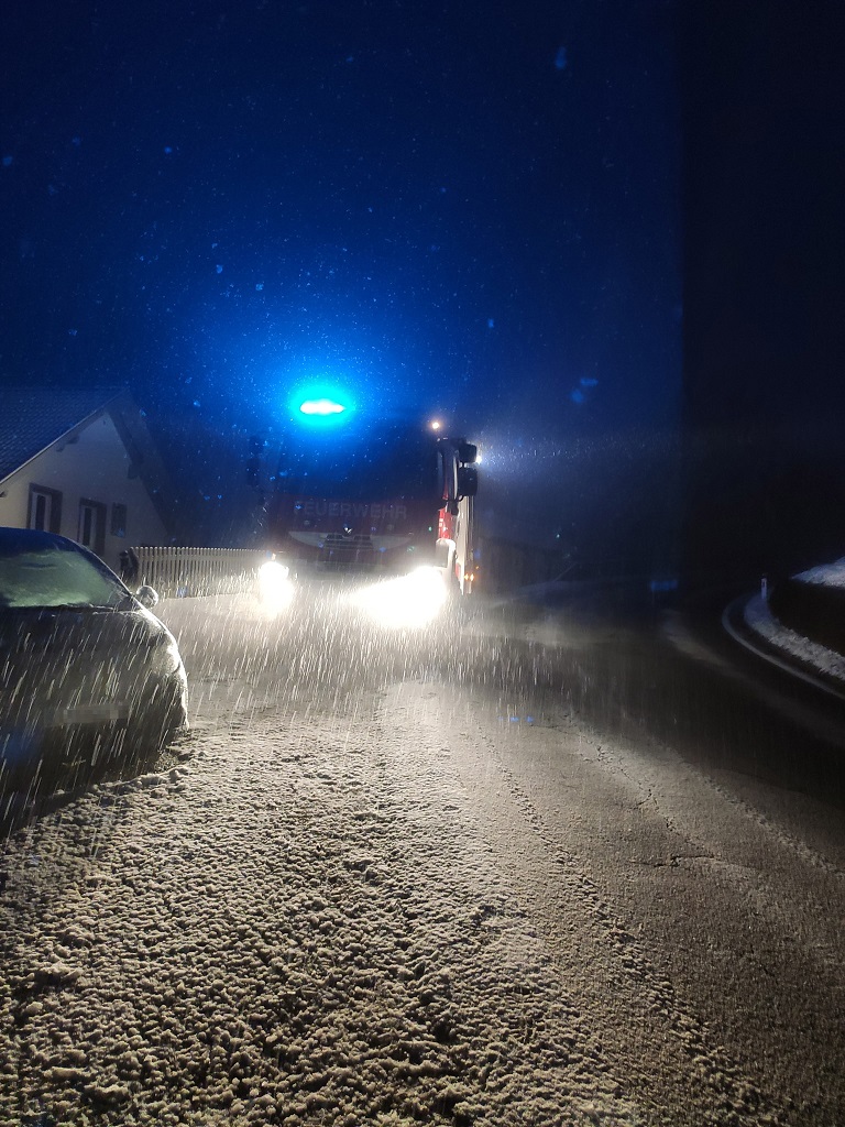 Mehrere Bäume sind aufgrund des schweren Schnees auf die Fahrbahn geknickt und stellten eine Gefahr für den Verkehr dar.