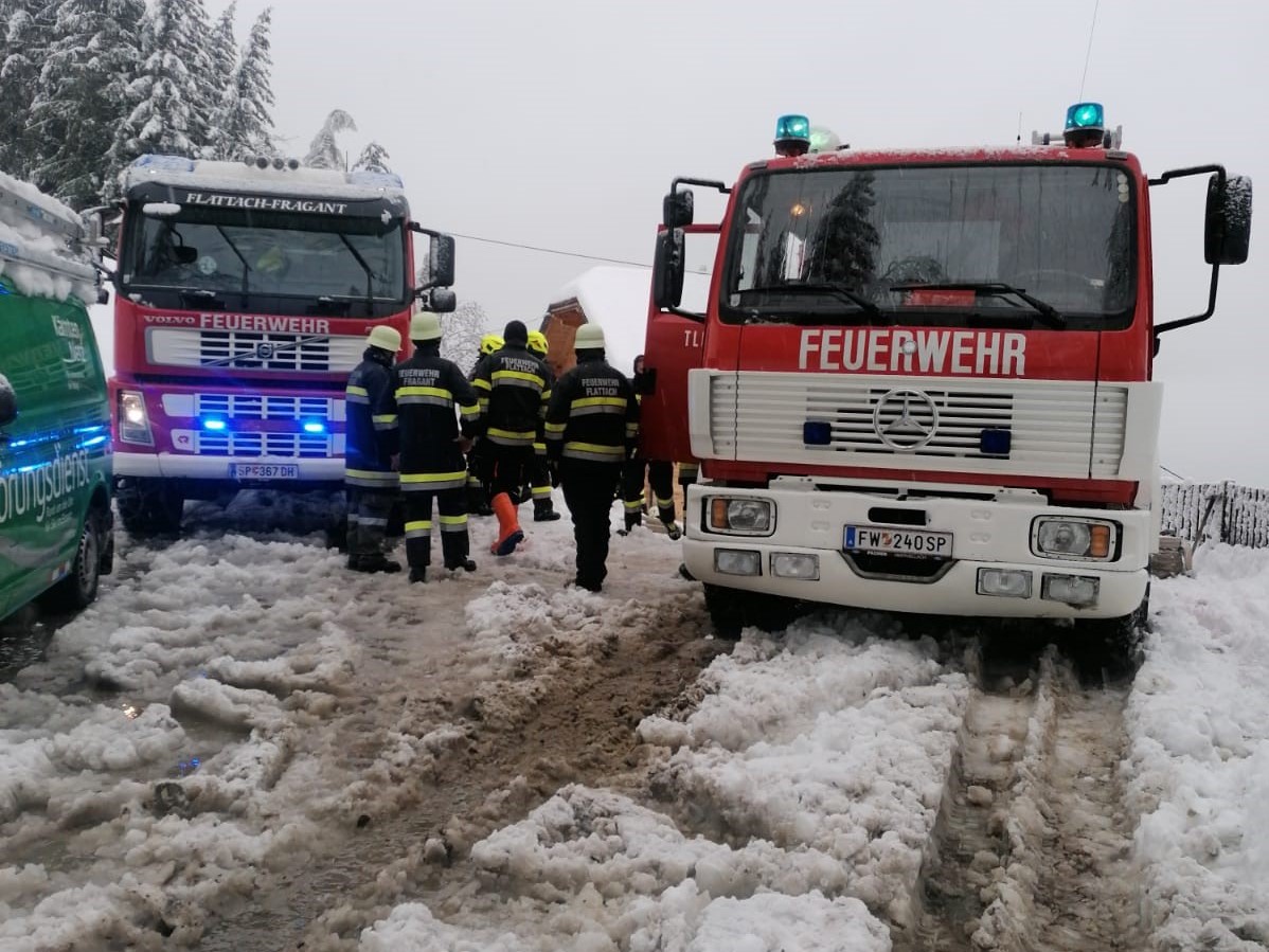 Schon die Zufahrt der Feuerwehrmänner zu den Feuerwehrhäusern im Tal war schwierig, da stellenweise über Nacht 40 cm Schnee gefallen sind.