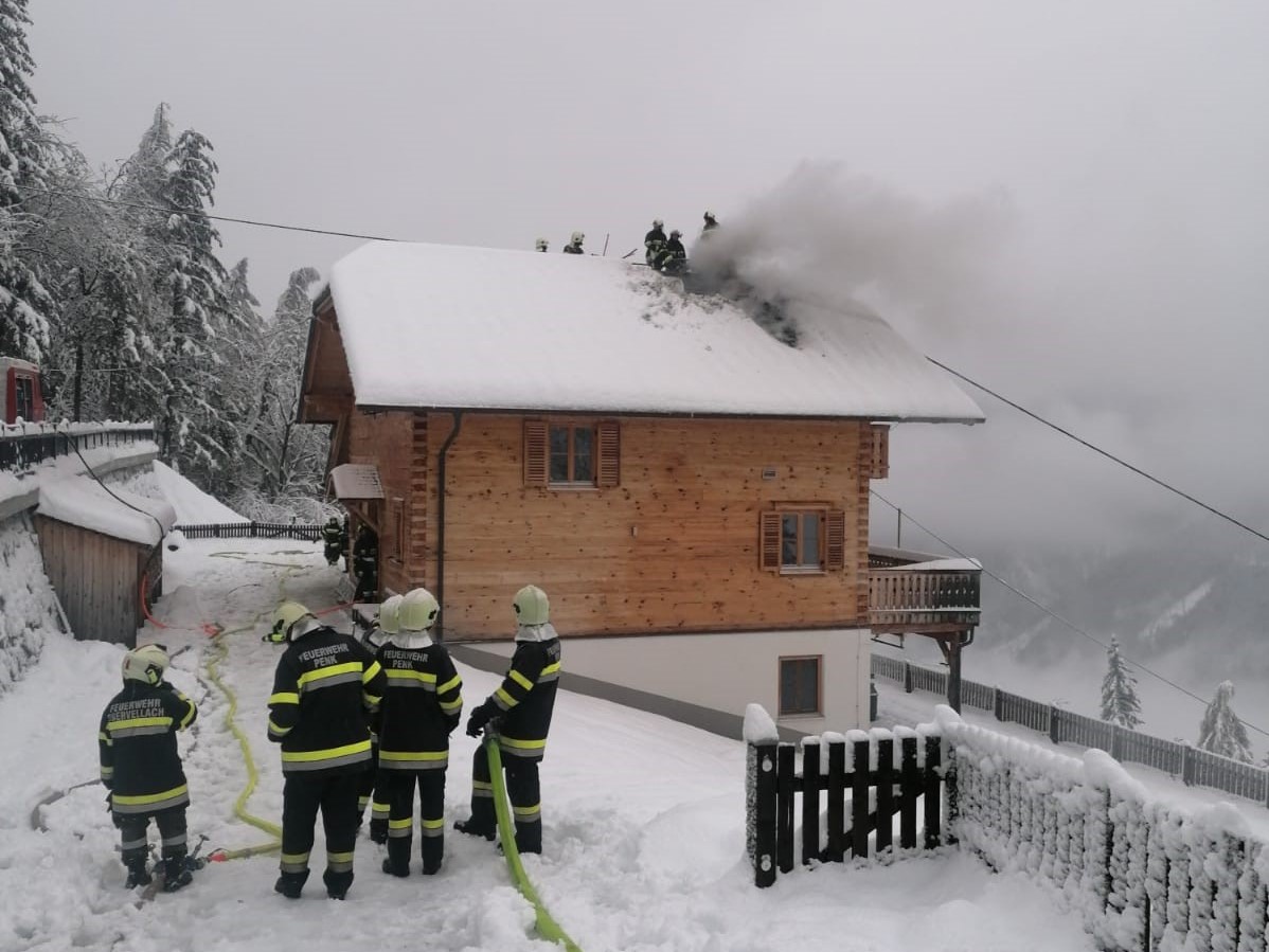 Erst nach Abschaltung des Stroms durch die Kelag war es möglich, von außen über das schneebedeckte Dach vorzugehen.