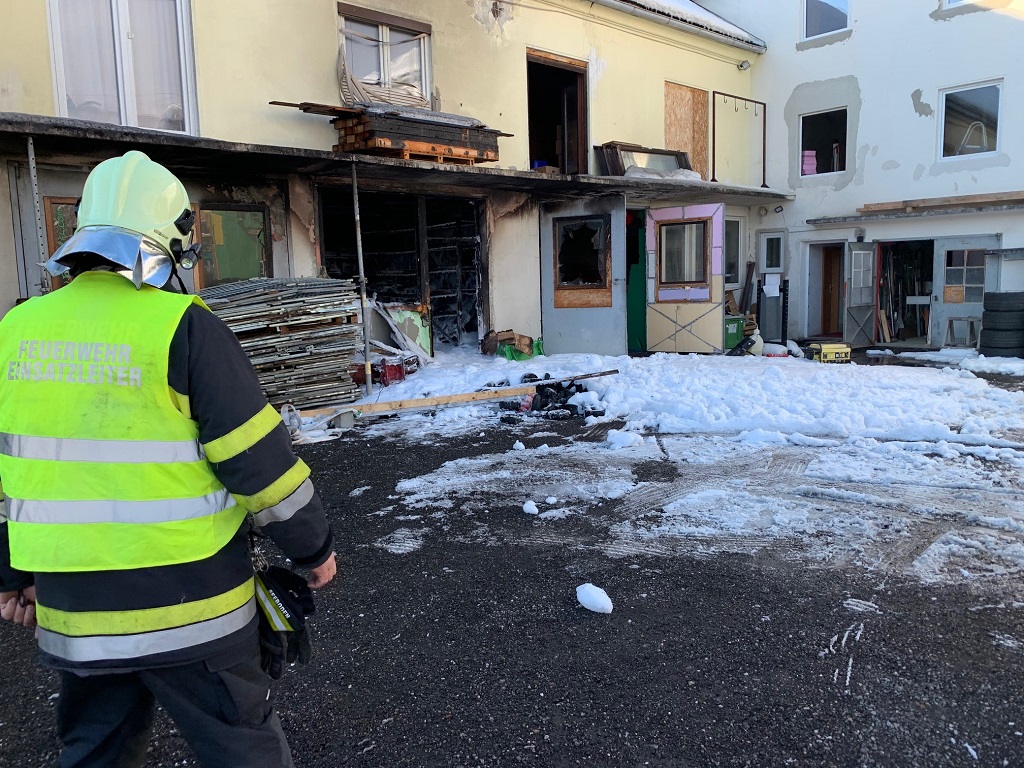 Am Einsatzort stellte sich für den Einsatzleiter Alfred Kohlmaier von der FF Seeboden heraus, dass möglicherweise gelagerte Lithium-Akkus die Brandursache sein könnten.