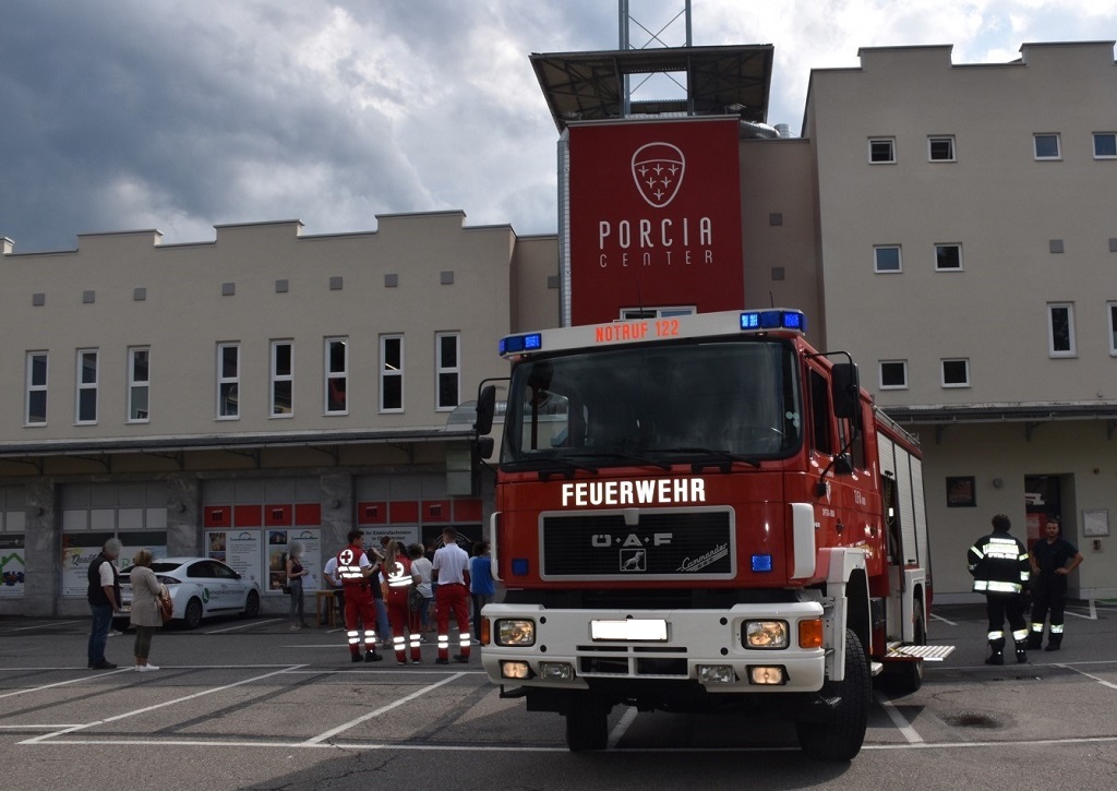2021.08.08   Gasaustritt Porciacenter f (2)Am Sonntag, dem 8.8.2021 um 16 Uhr wurde die Freiwillige Feuerwehr Spittal an der Drau mittels Sirenenalarm zu einem Technischen Einsatz alarmiert.