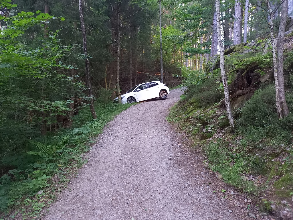 Aus unerklärlichen Gründen fuhr ein Lenker mit einem Pkw im Ortsteil von Kleindombra, den bekannten „Slow-Trail“ Wanderweg entlang.