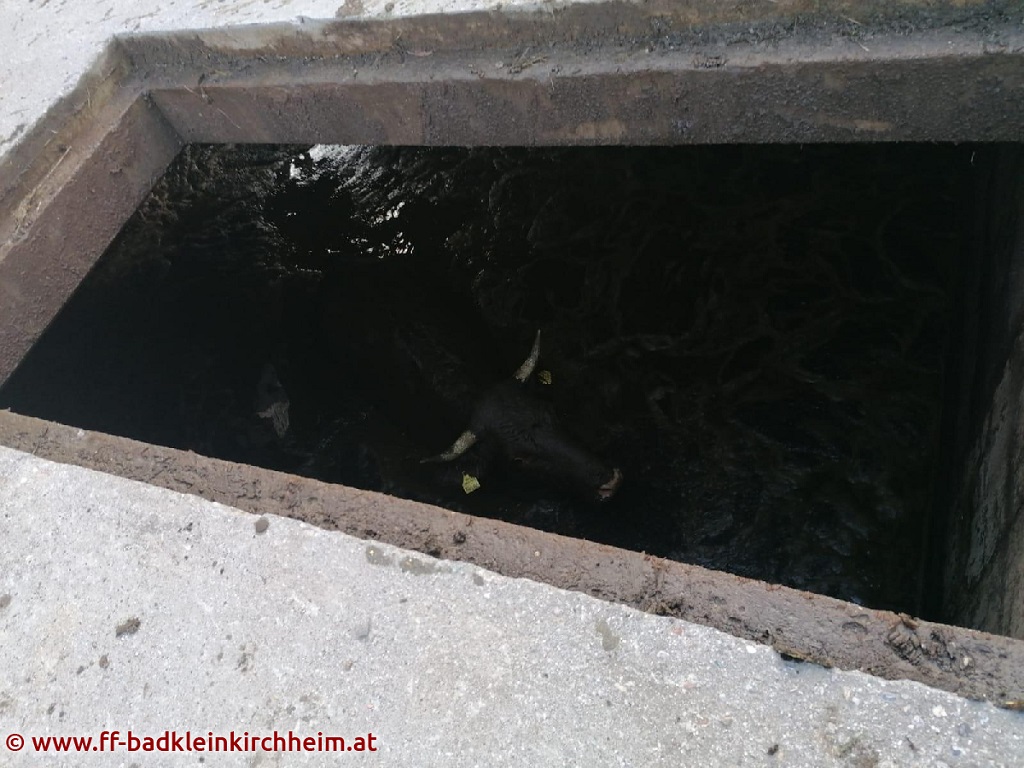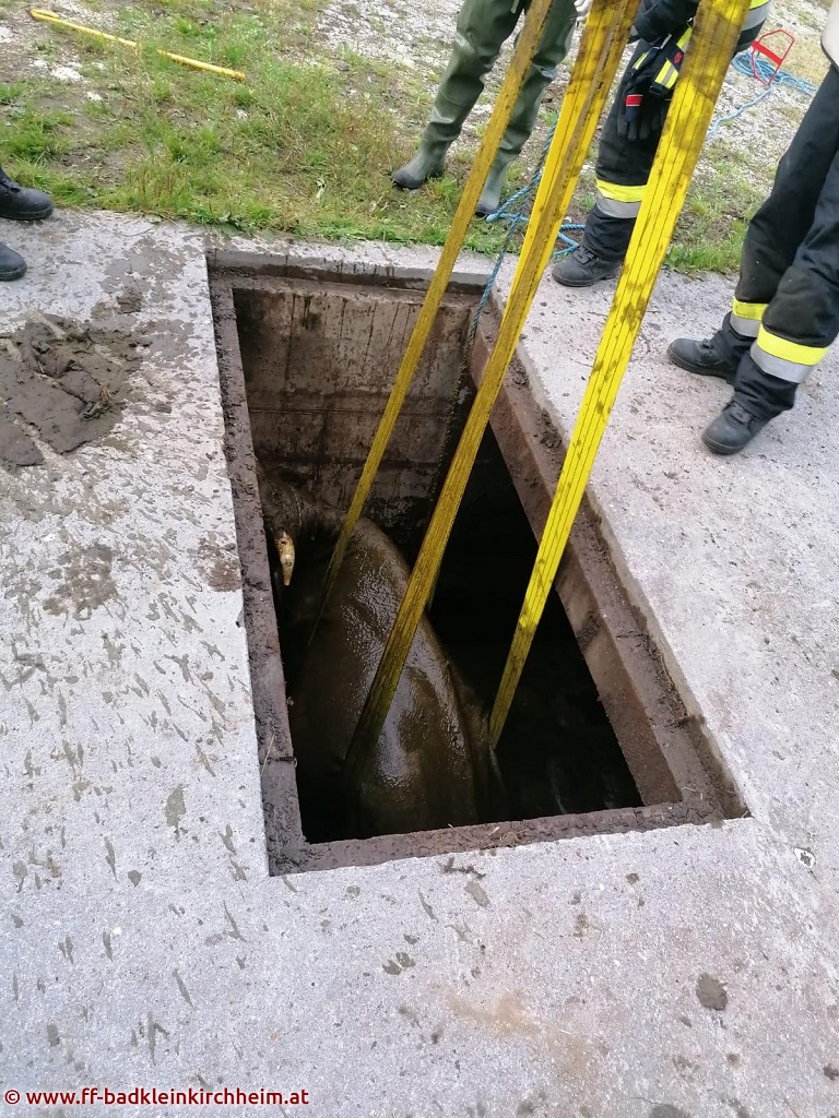 Kuh in Jauchengrube gefallen