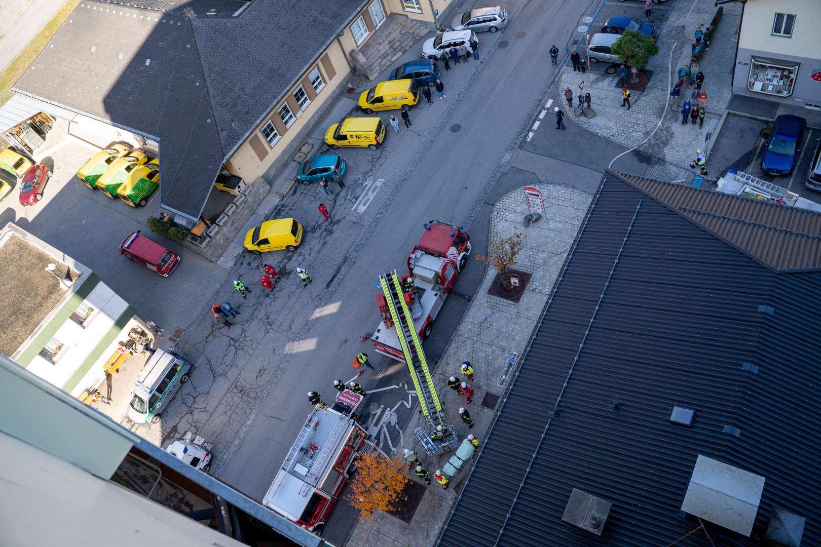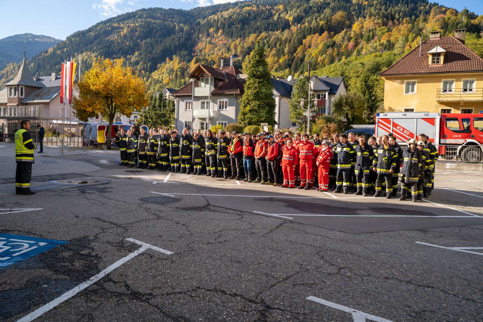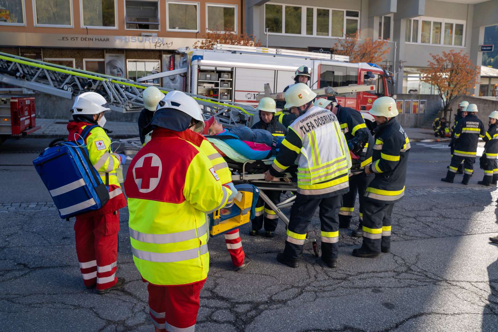 DSC08375 26 (Groß)Am Samstag, dem 23.10.2021 fand die alljährliche Gemeindefeuerwehrübung der Feuerwehren der Stadtgemeinde Radenthein statt. Übungsannahme war ein Brand im neunten Stock des Hochhauses im Ortszentrum von Radenthein.