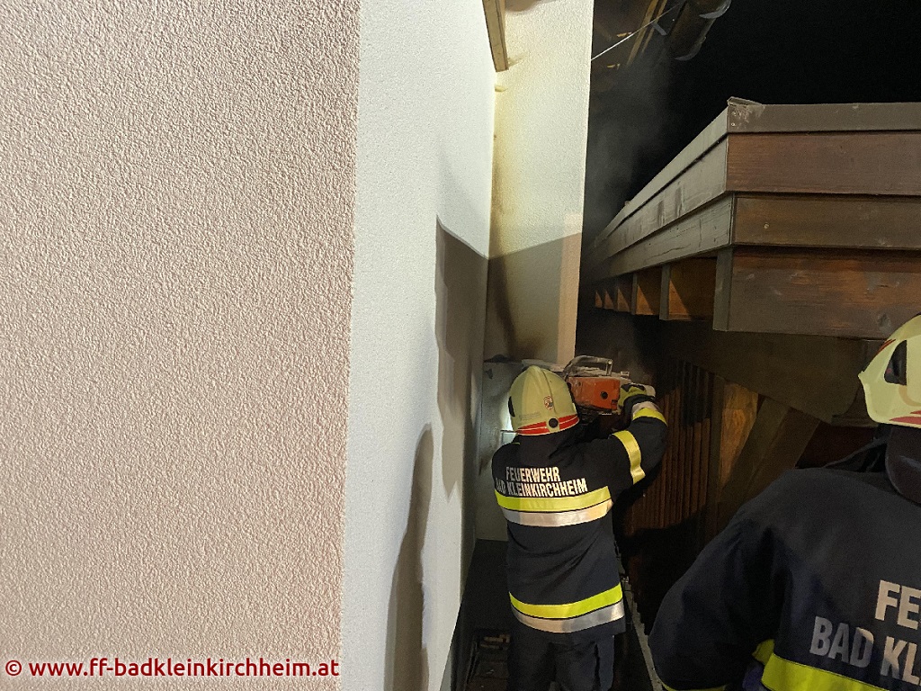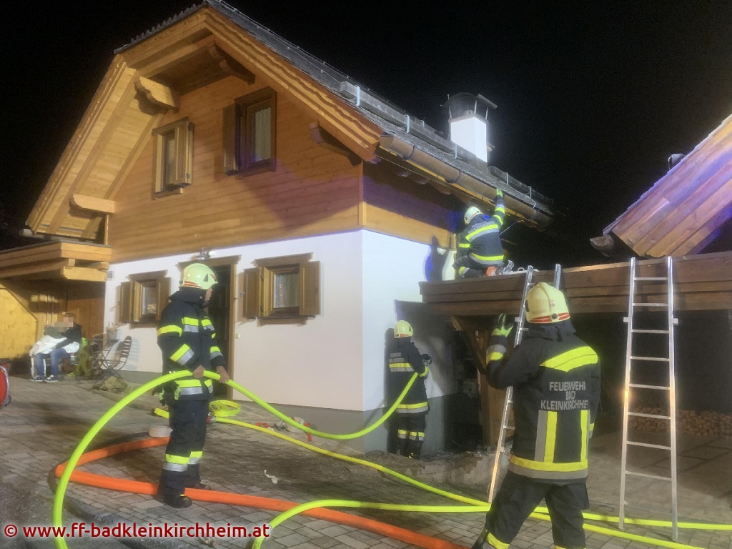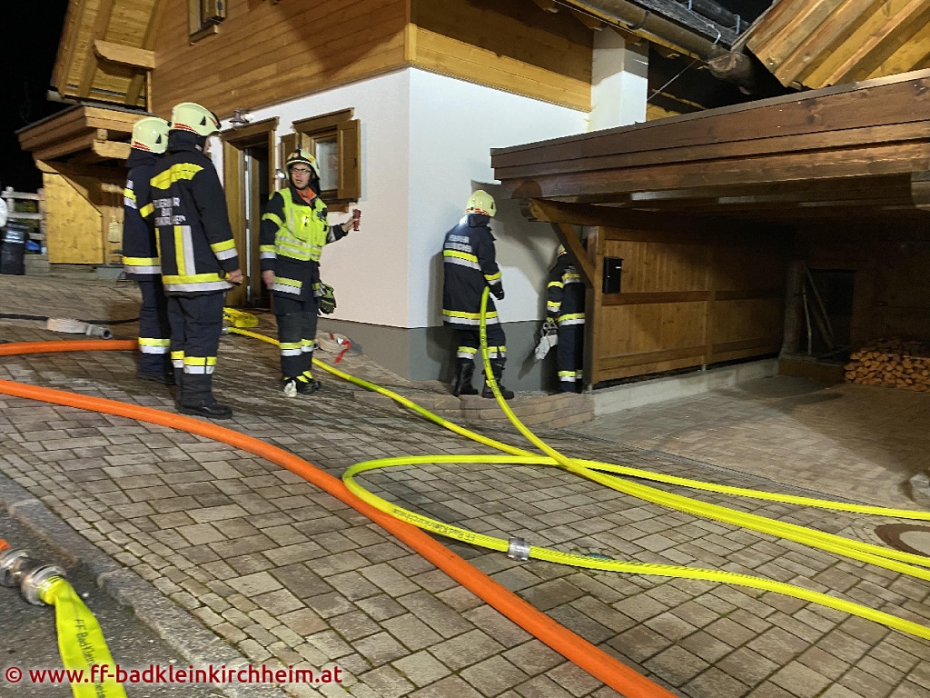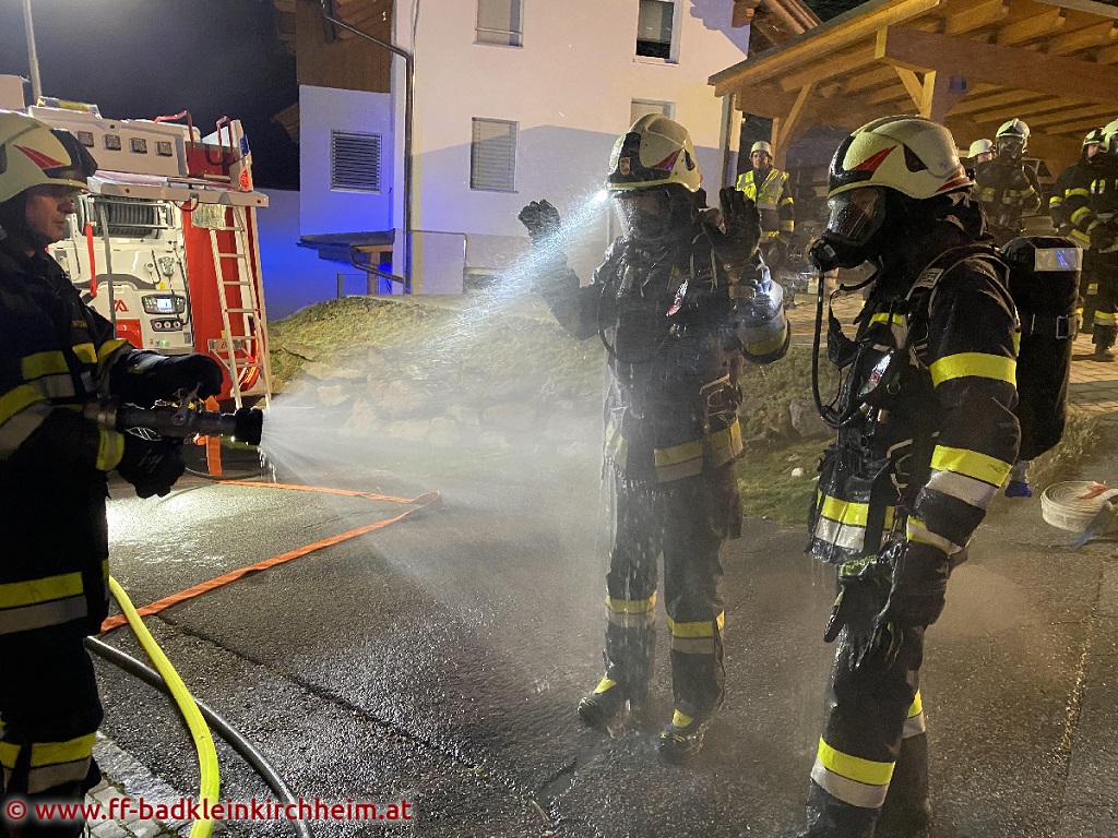 114 2021 10 27 05.01.16Am Mittwoch, dem 27.10.2021 um 04:39 Uhr wurde die Feuerwehr Bad Kleinkirchheim per Sirenenalarm unter dem Alarmstichwort „B2, Brand Kamin/Rauchfang“ in den Drosselweg alarmiert. Während der Anfahrt rüstete sich bereits ein Atemschutztrupp aus.