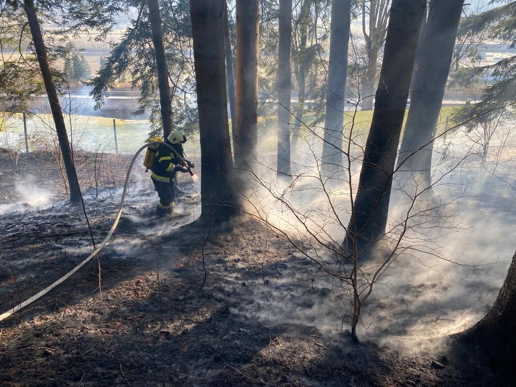 „Durch das gut abgestimmte und engagierte Vorgehen aller Kräfte der drei Feuerwehren gelang es trotz des starken Windes, die brennenden Fläche rasch einzudämmen, bevor das Feuer eine mit trockenem Unterholz bewachsene Lichtung erreichen konnte“, sagt Einsatzleiter Ebner. Rund 80 Feuerwehrleute waren rund zweieinhalb Stunden im Gelände im Einsatz. Auch benachbarte Landwirte haben mitgeholfen.