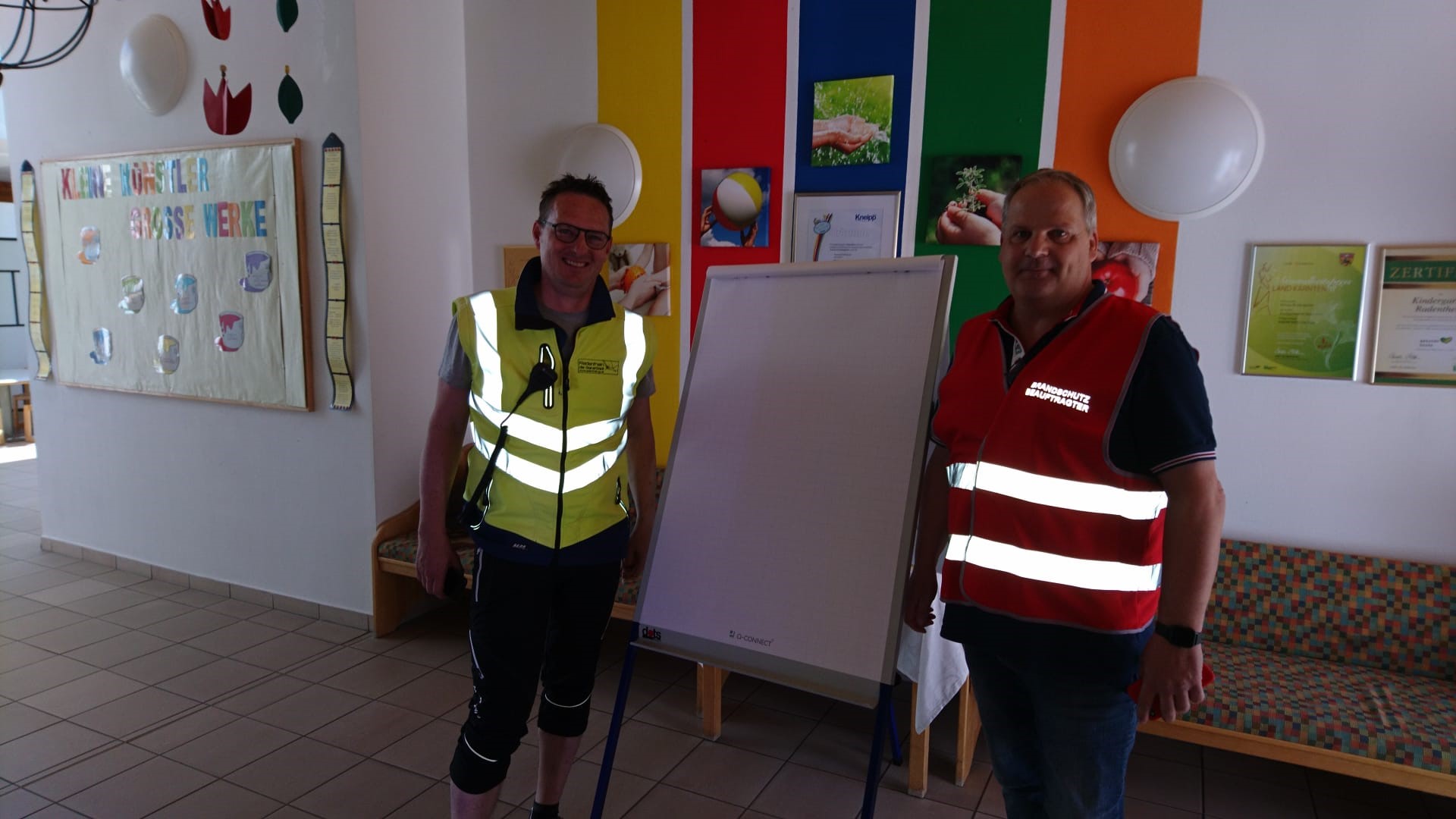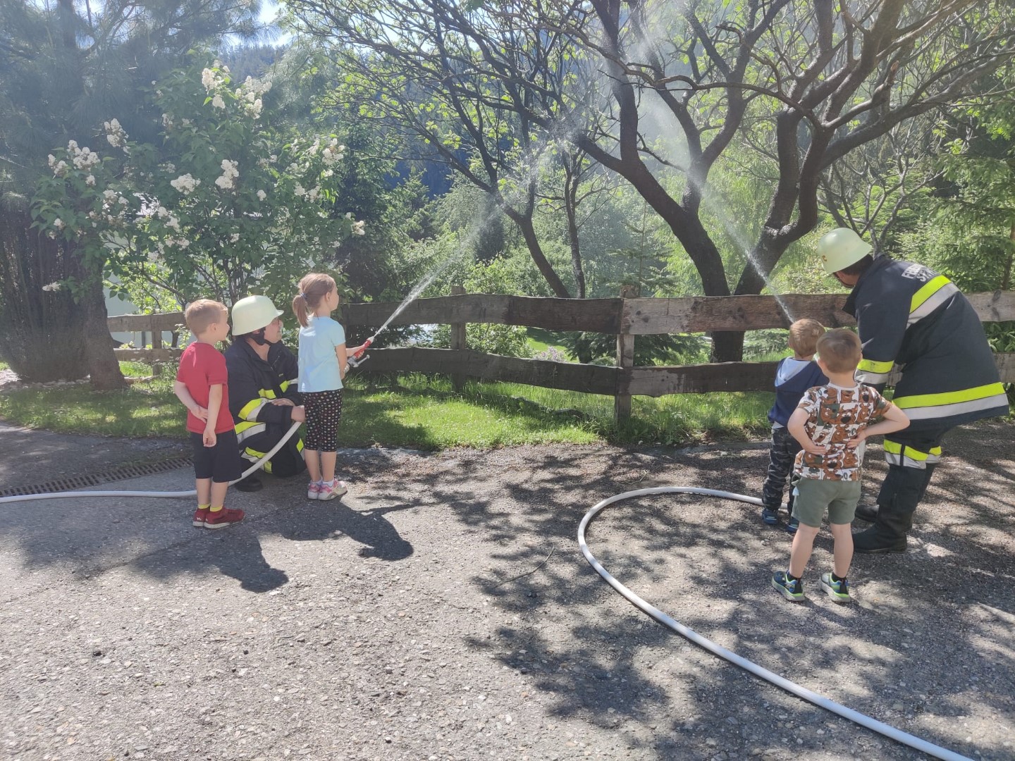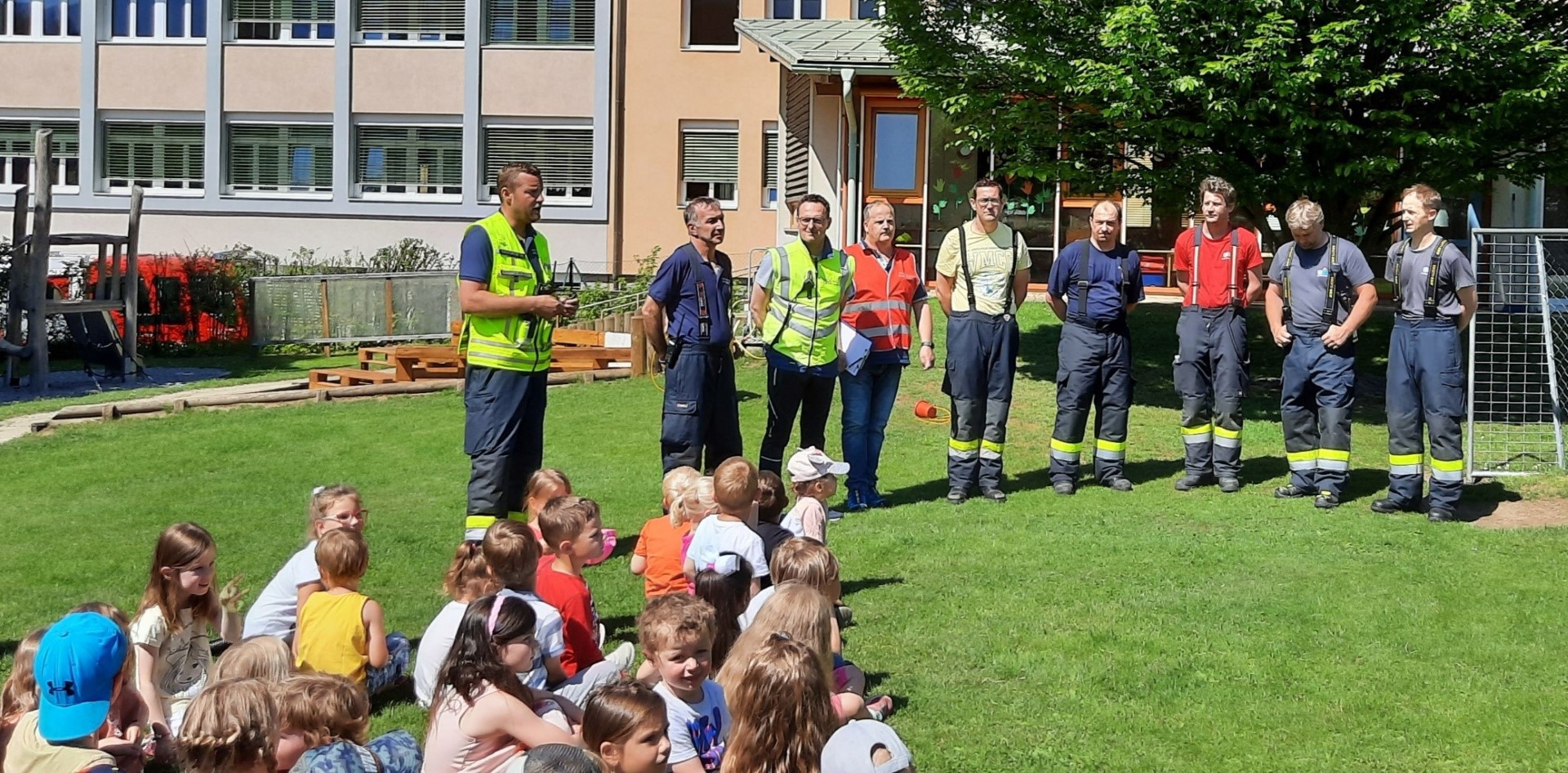 Der Einsatzleiter der FF Radenthein HBI Hannes Daborer, die Leiterin des Kiga Michaela Wallner, der Brandschutzbeauftragte Markus Tronegger und der Bürgermeister der Stadtgemeinde Radenthein Michael Maier konnten bei der Schlussbesprechung von einer erfolgreichen und reibungslosen Übung sprechen. Auch der vor Kurzem durchgeführte Besuch des Kindergartens bei der Feuerwehr Radenthein sorgte für Erleichterung bei den Kindern und nahm ihnen die Angst vor der besonderen Situation.