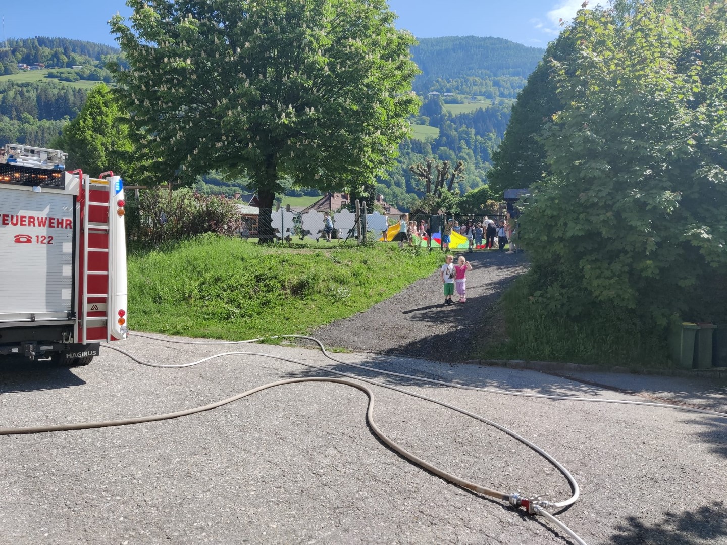 kiga radenthein 5Große Aufregung herrschte am Freitag, dem 20. Mai 2022 für die Kinder des Kindergarten Radenthein. Kurz nach der Vormittagsjause stieg plötzlich Rauch aus dem Keller auf. Nachdem eine Kindergartenpädagogin den Notruf bei der LAWZ absetzte, wurde sofort mit der Evakuierung des Gebäudes begonnen.