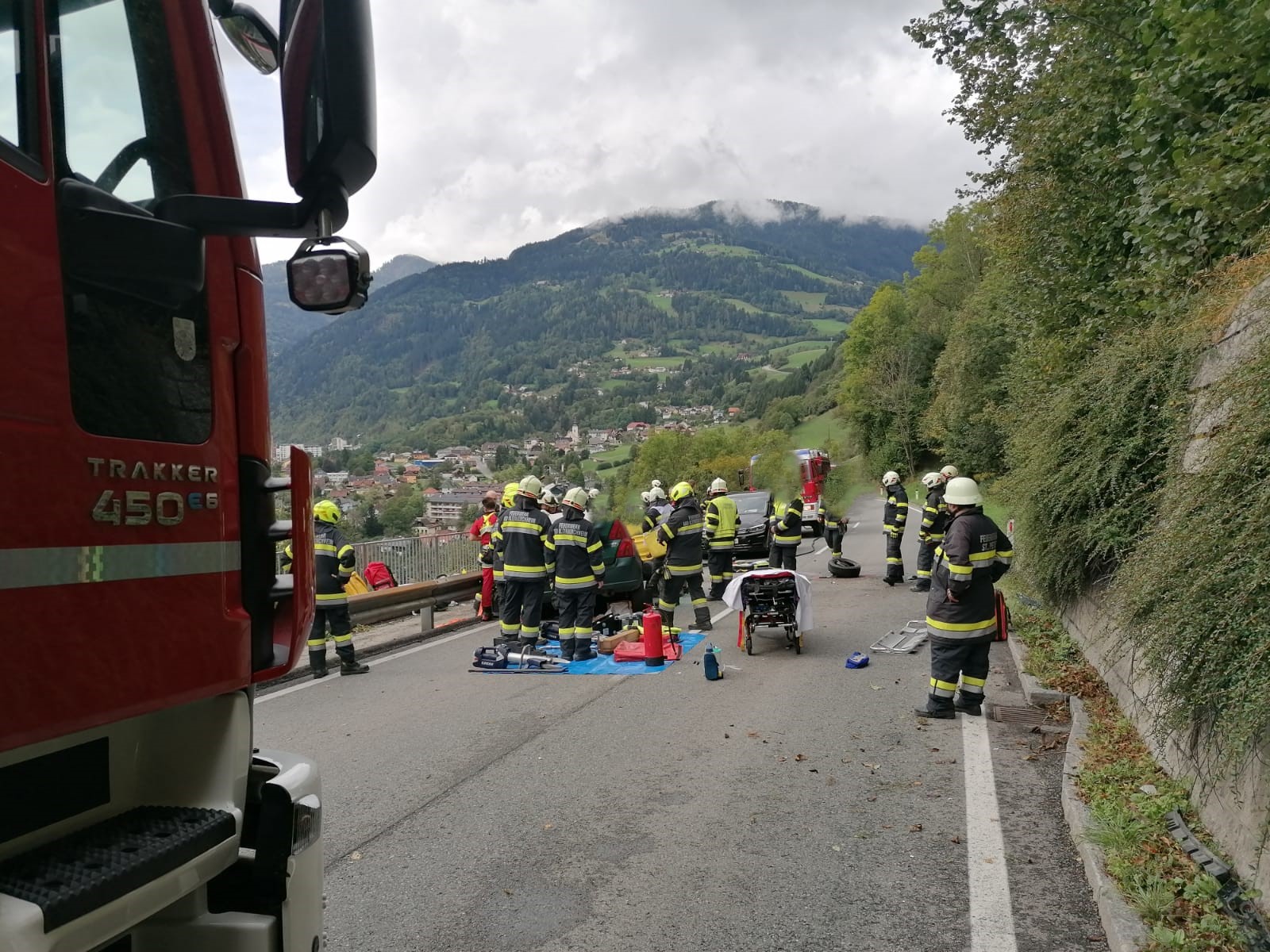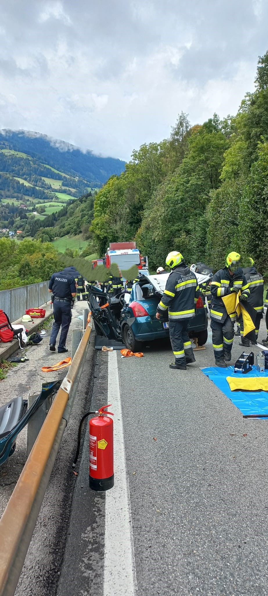Auf der B 88 Kleinkirchheimer Straße ereignete sich am 23. September 2023 gegen 13:40 Uhr im Bereich der Gemeinde Radenthein ein schwerer Verkehrsunfall. Ein Fahrzeug war aus derzeit unbekannter Ursache gegen die Leitschiene geprallt, wodurch die Fahrzeuglenkerin im Fahrzeug eingeklemmt wurde.