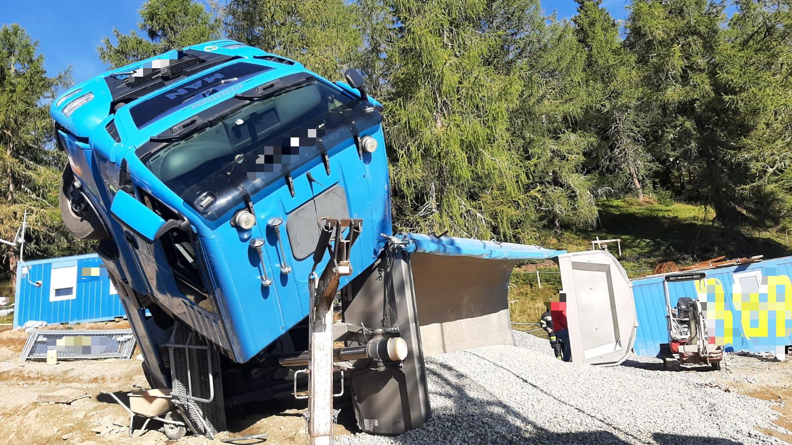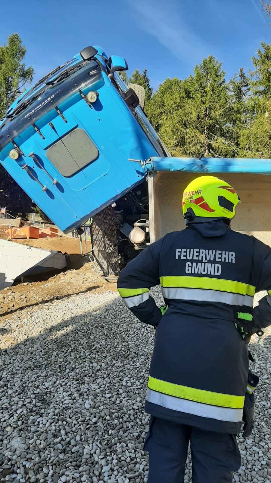 Daraufhin setzte sich die Feuerwehr Gmünd gemeinsam mit dem Roten Kreuz auf das Stubeck ab. Vor Ort stellte sich heraus, dass ein LKW bei einem Abladevorgang von der Kippmulde umstürzte. Der zum Zeitpunkt im Fahrzeug befindliche Arbeiter, wurde bereits durch die anwesenden Personen aus dem Fahrzeug befreit und durch das Rote Kreuz erstversorgt.