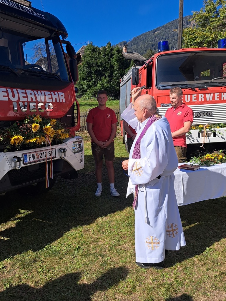 Das 32 Jahre alte Einsatzfahrzeug wurde nun gegen ein neues welches am modernsten Stand der Technik ist ausgetauscht. Bei bestem Kaiserwetter und sommerlichen Temperaturen war es für Kommandanten Martin Untermoser ihm mit viel Freude eine große Ehre die Ansprache durchzuführen. Er bedankt sich bei allen Mitwirkenden welche bei der aufwendigen Fahrzeugprojektierung mitgearbeitet hatten sowie auch für die finanzielle Unterstützung seitens des Landes, der Gemeinde, der Bevölkerung und allen weiteren Unterstützern. Neben den Feuerwehrkameraden und Kameradinnen sowie deren Familien und Helfern waren auch viele Gäste aus der Bevölkerung, Kameraden der Nachbarwehren und Gemeindevertreter anwesend.