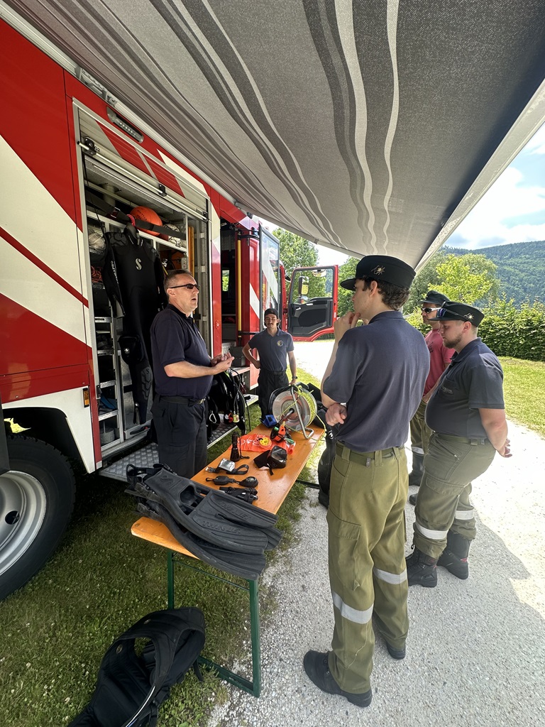 Nach einem kurzen Theorieteil, in dem der Aufbau, die Struktur, die Alarmierung und Maßnahmen bei Taucheinsätzen der Kärntner Feuerwehren näher beleuchtet wurden, wurde auch der Aufbau der Wasserrettungen in Kärnten sowie deren Tätigkeiten im Hinblick auf die Zusammenarbeit mit der Feuerwehr bei Taucheinsätzen erklärt.