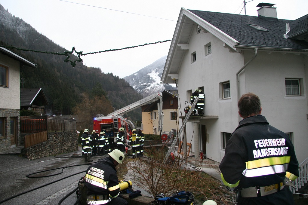 Die ersten Atemschutztrupps führten im total verrauchten Gebäude eine genauere Erkundung durch, da von einem Kaminbrand auszugehen war, wurde dieser mit Wärmebildkameras abgesucht. Es stellte sich jedoch sehr rasch heraus dass nicht nur der Kamin eine stark erhöhte Temperatur aufwies, sondern das sich bereits in den angrenzenden Zwischendecken des Erdgeschoßes sowie des Obergeschoßes und in den Wänden Brandherde gebildet haben müssen.