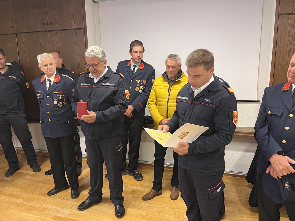 Im Rahmen des Abschlusses wurde Brandinspektor Gustav Burgstaller für seine langjährige und engagierte Tätigkeit als Ausbildner und Ausbildungsleiter im Bezirk Spittal geehrt. Die Ehrung wurde von Bezirksfeuerwehrkommandant-Stellvertreter Peter Podesser vorgenommen, der in seiner Ansprache die herausragenden Verdienste Burgstallers um die Ausbildung der Feuerwehrmitglieder im Bezirk würdigte und ihm für seinen jahrzehntelangen Einsatz dankte.