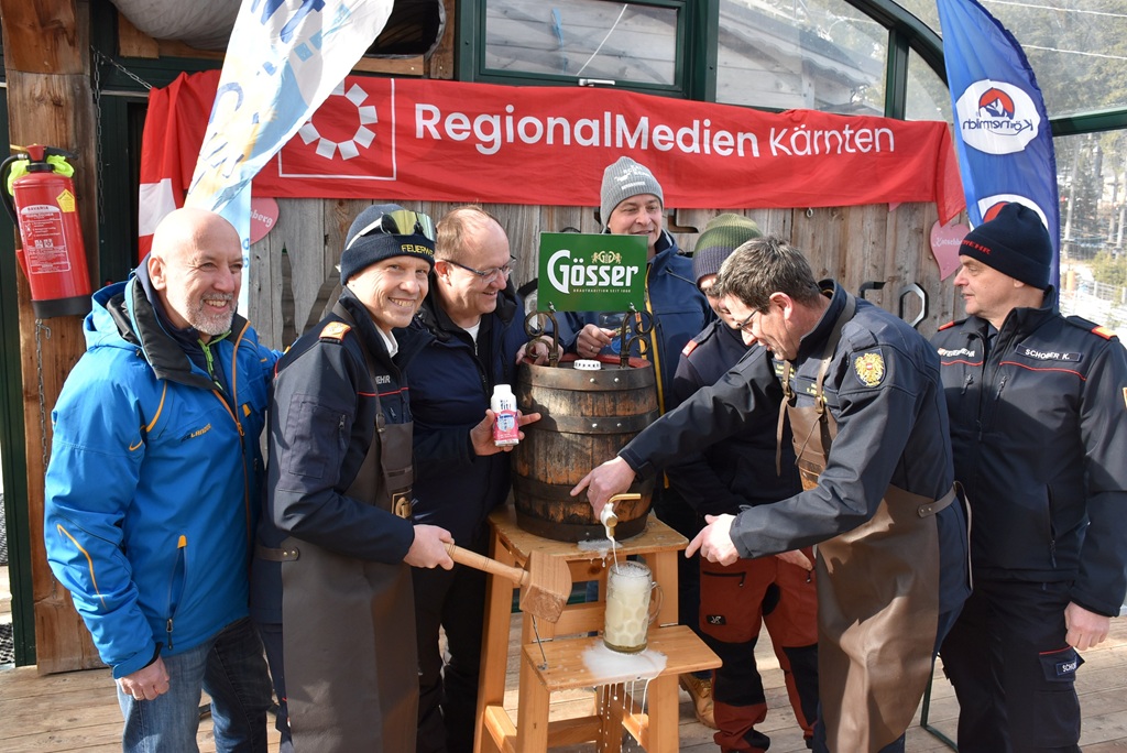 Landesfeuerwehrkommandant Rudolf Robin ist jedes Jahr aufs Neue begeistert: „Heuer haben wir fast 900 Anmeldungen aus ganz Kärnten und wir treffen sogar Feuerwehren aus Salzburg und Deutschland hier heroben. Ab Mittag ist es praktisch unmöglich in den Hütten oder am Lift nicht auf einen Feuerwehrmann oder -frau zu treffen!“. Bürgermeister Franz Aschbacher und Abschnittsfeuerwehrkommandant Josef Heiss luden im Lärchenstadl zum Bieranstich ein.