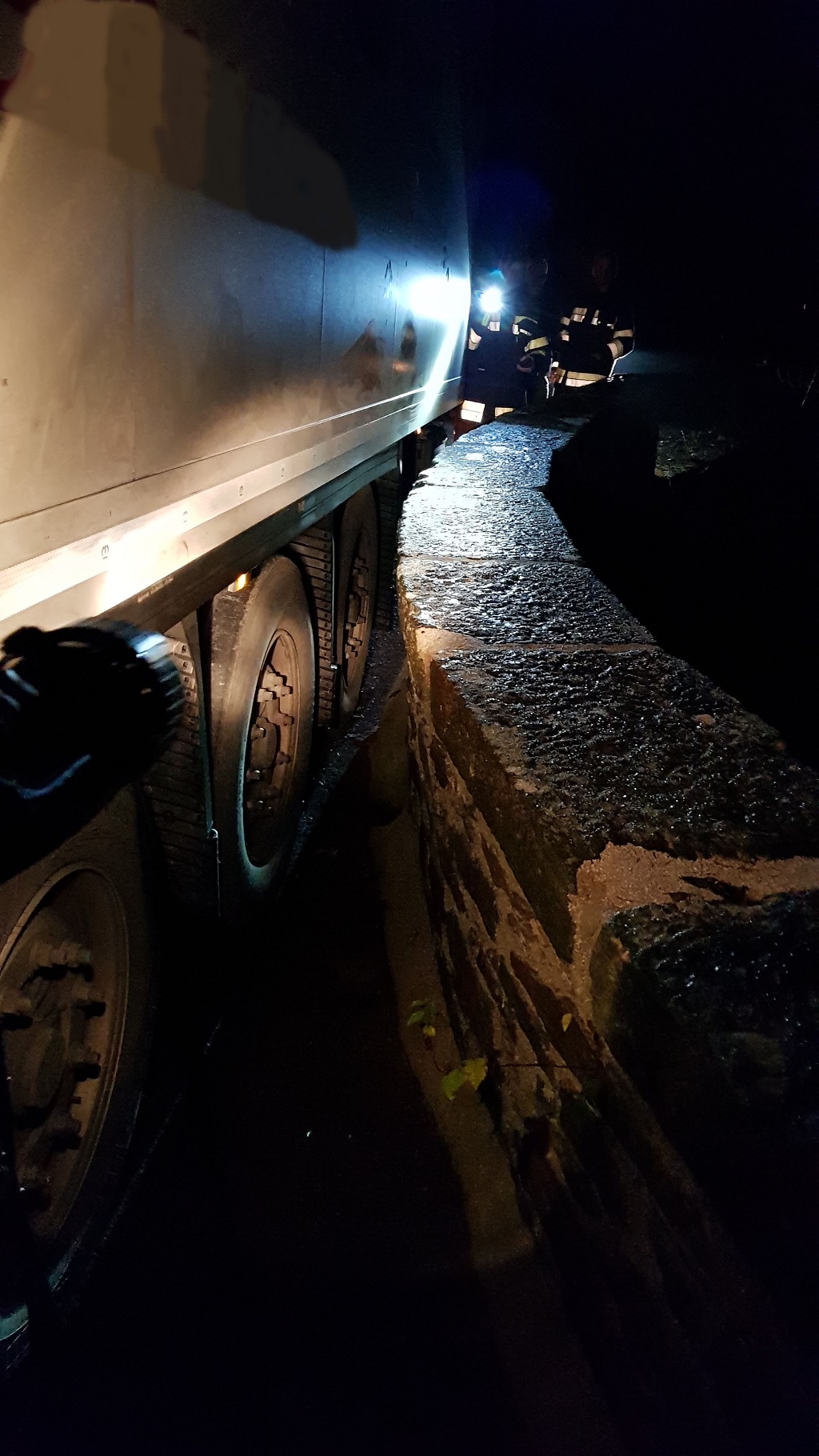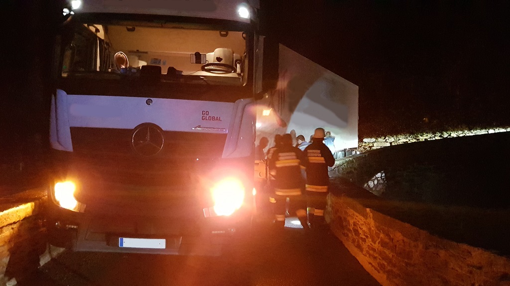 Vermutlich ein fehlerhaft bzw. falsch eingestelltes Navigationssystem lotste einen Sattelschlepper aus Spanien vom Liesertal kommend auf die L10 Richtung Lieserhofen. Auch als die Straßen immer enger wurden bemerkte der Kraftfahrer des Sattelschleppers nicht, dass er hier auf der falschen Straße ist. Auch einige Fahrverbotstafeln und Gewichtsbeschränkungen dürften hier ignoriert worden sein. Als auf Höhe der „Steinernen Brücke“ dann überhaupt nichts mehr ging, wurden die Einsatzkräfte alarmiert.