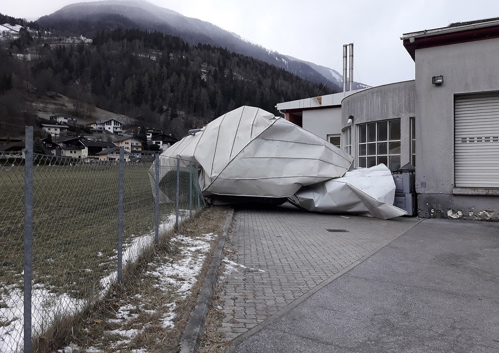 Am Mittwoch dem 02.01.2018 um 20:30 Uhr, wurden wir mittels Sirenenalarm, nach Ausserfragant gerufen. Blechelemente ( 6x1m lang, 30kg schwer) von einen Lagerplatz hat der Sturm im Umkreis von 200m verstreut.